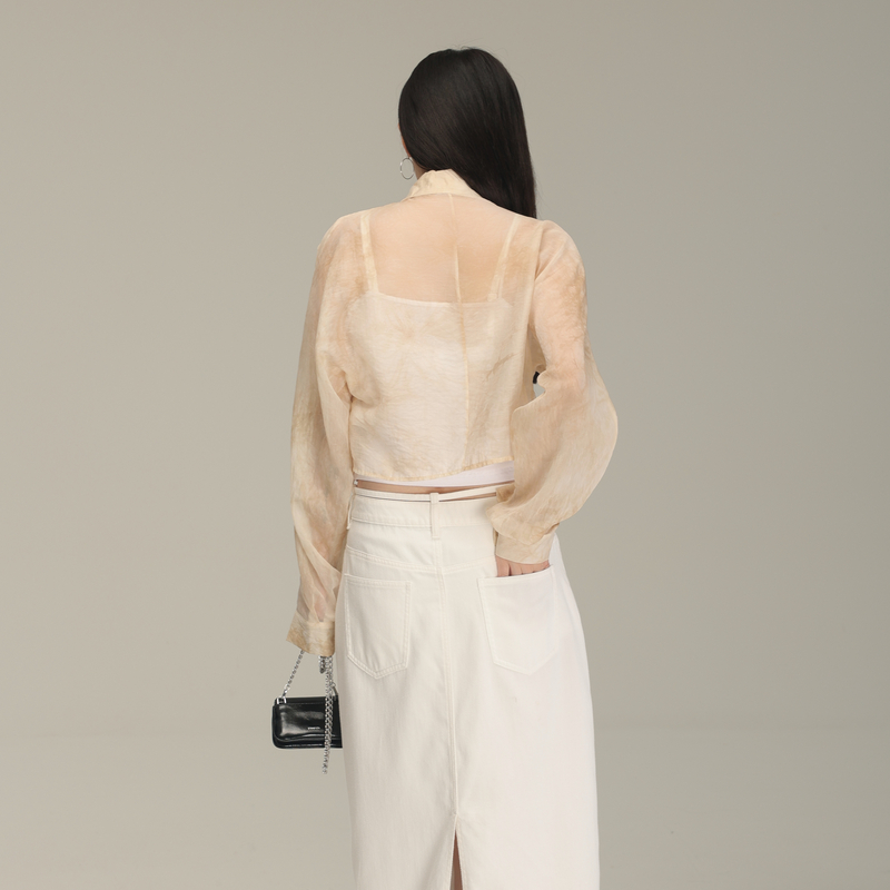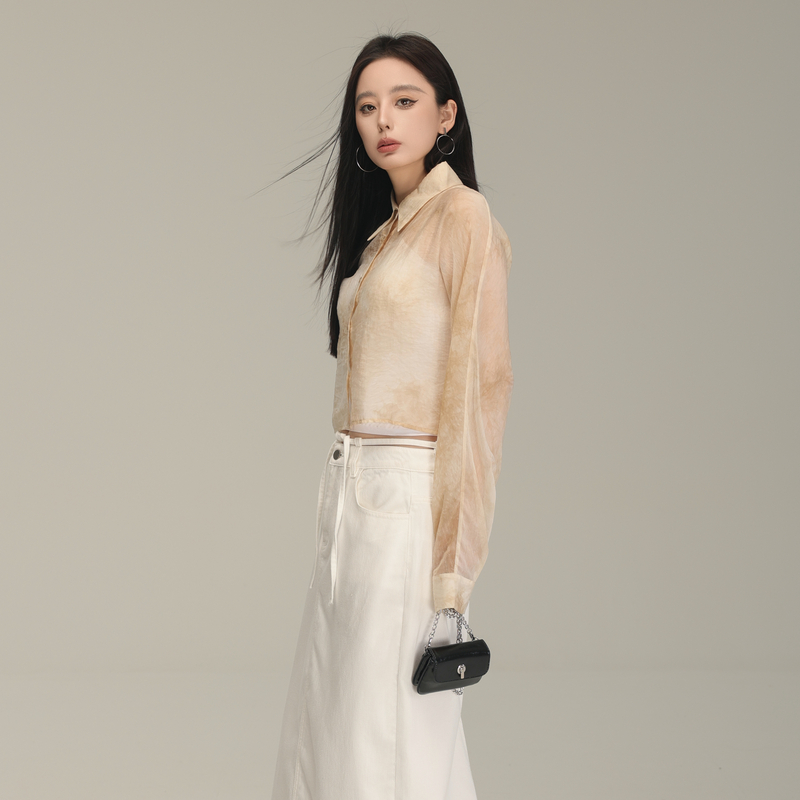 AIRIQI夏季新款水墨晕染天丝衬衫