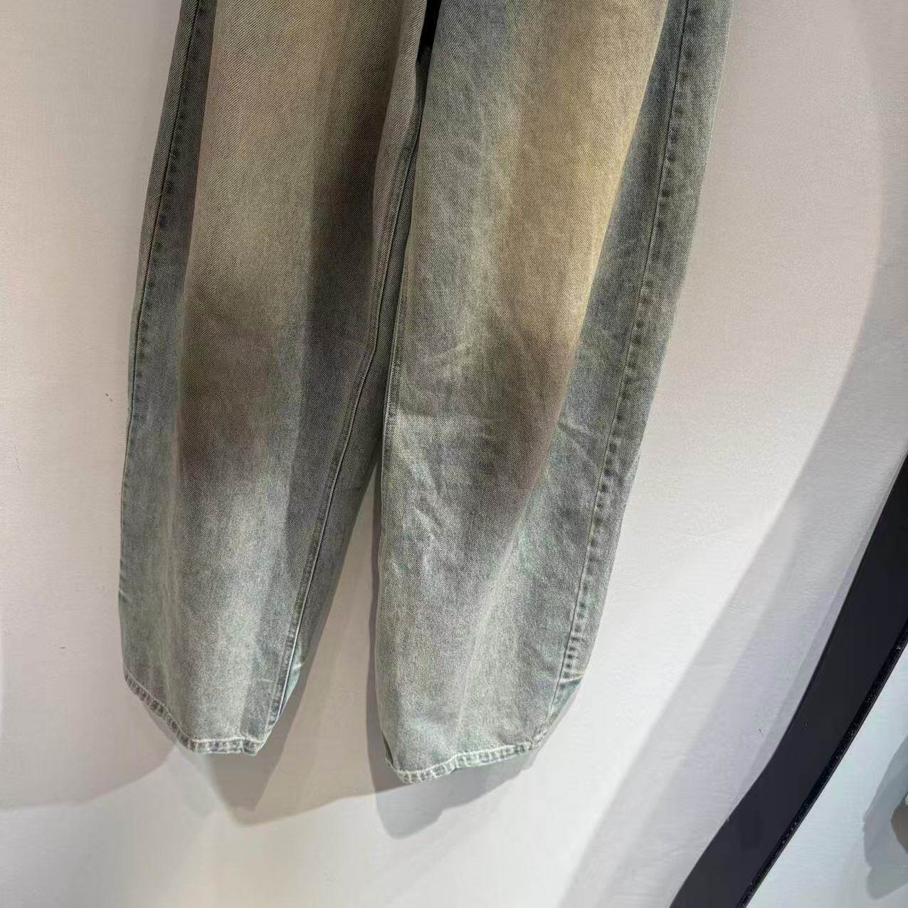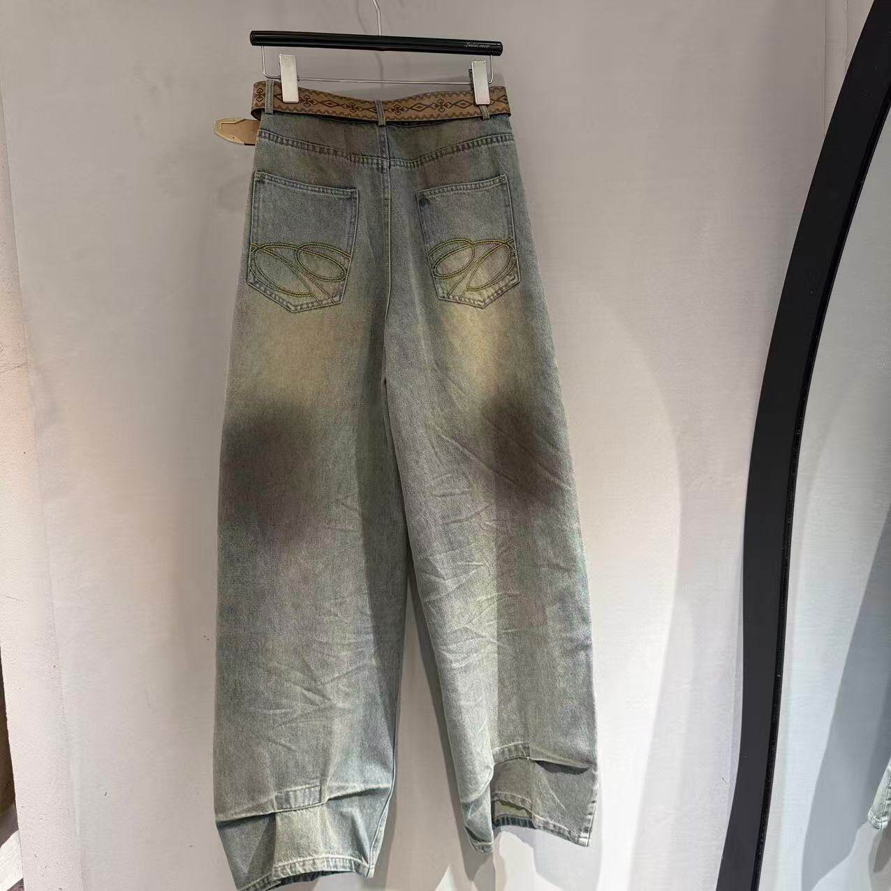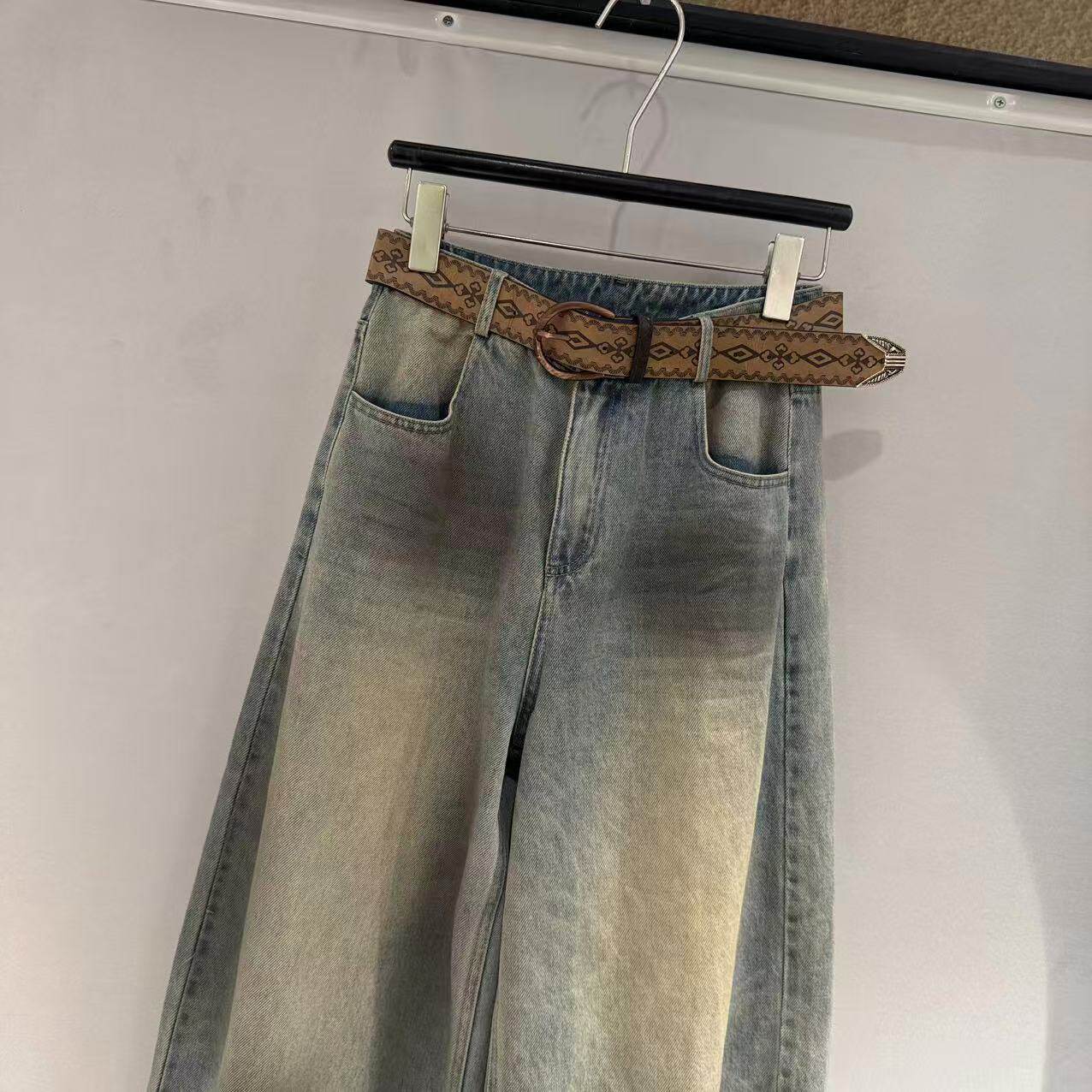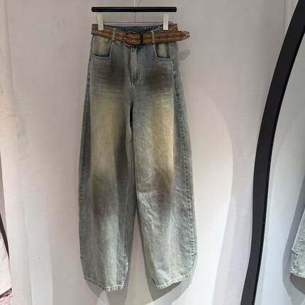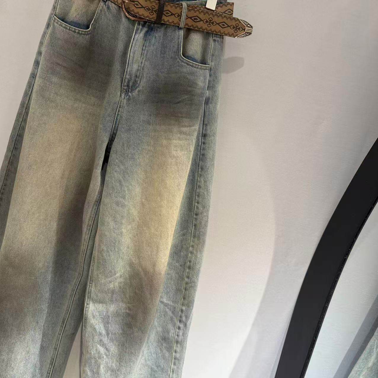 欧洲站2026春新款欧货美式脏染高腰拼色松弛感宽松牛仔裤潮23263