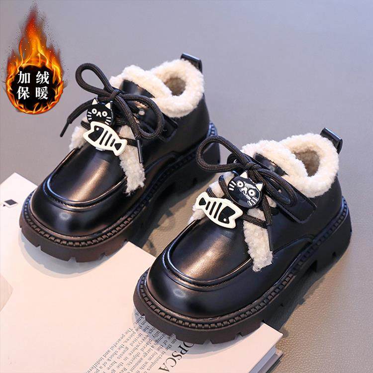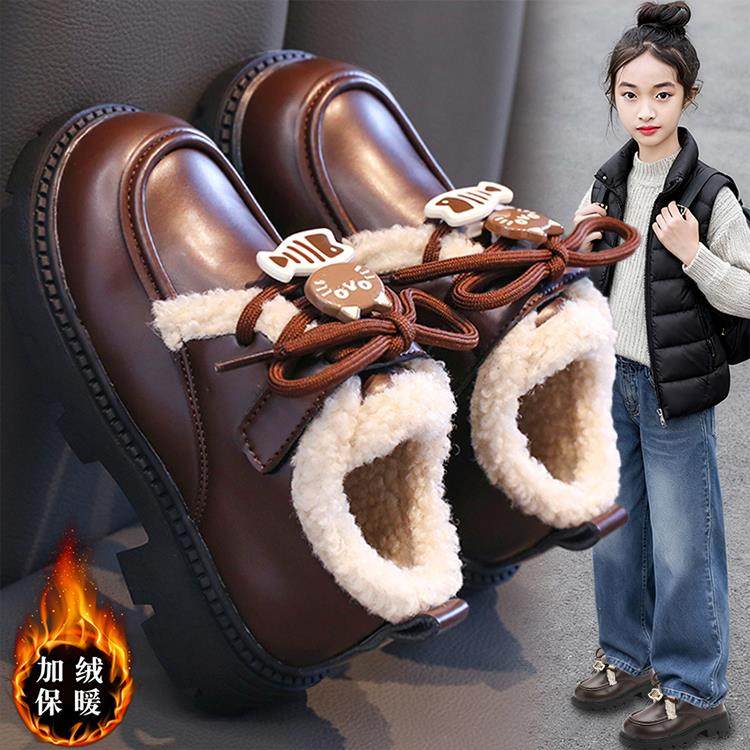 KFT脚王童鞋女童小皮鞋冬季2025新款儿童加绒加厚保暖雪地棉鞋女