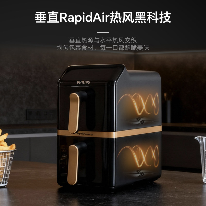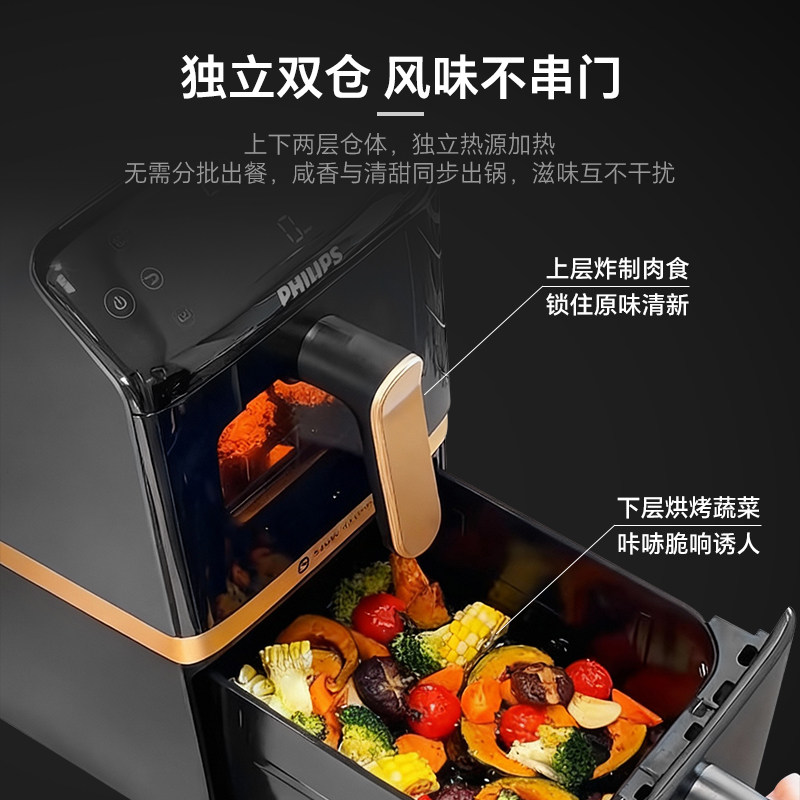 飞利浦空气炸锅全自动家用NA462可视化10L双仓大容量多功能