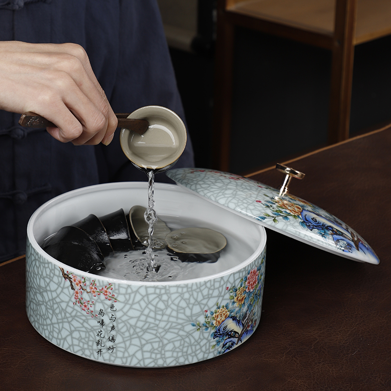 茶洗大号珐琅彩水洗多功能茶罐普洱茶饼茶洗有盖茶道配件日式茶缸