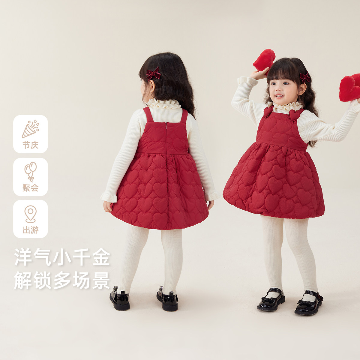 【新年款】女童连衣裙儿童加厚夹棉背心裙小宝宝保暖冬装红色衣服