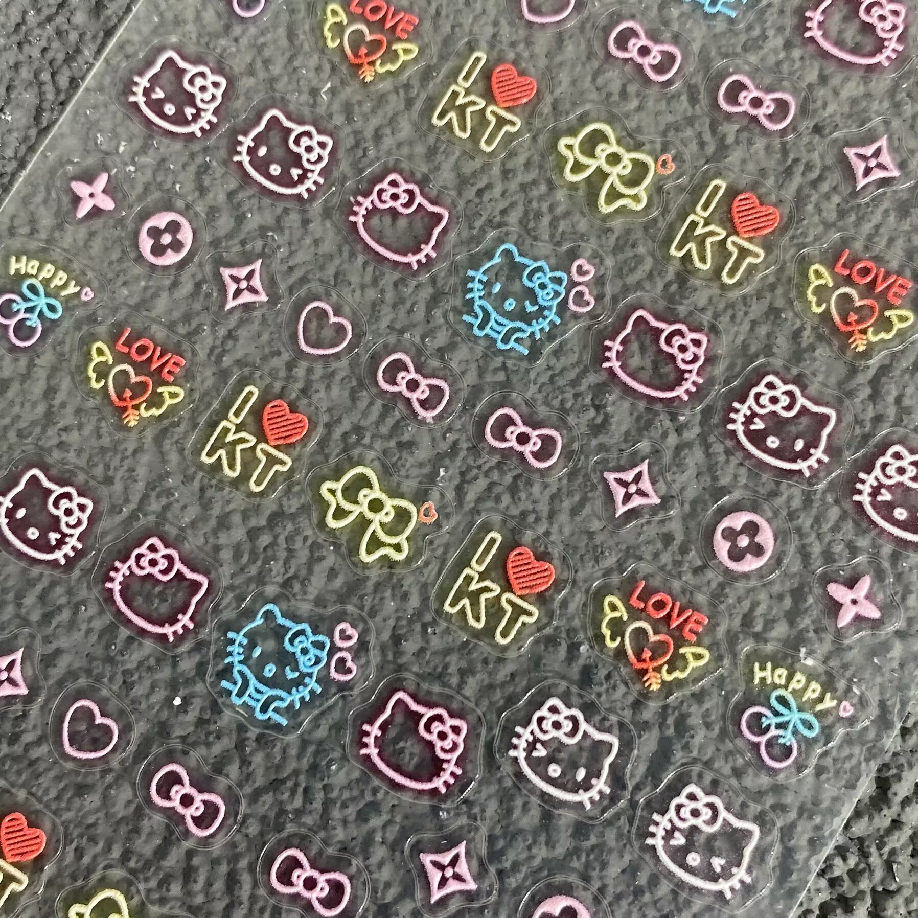 可爱镂空线条Hellokitty浮雕美甲贴纸卡通立体粉色凯蒂猫装饰贴