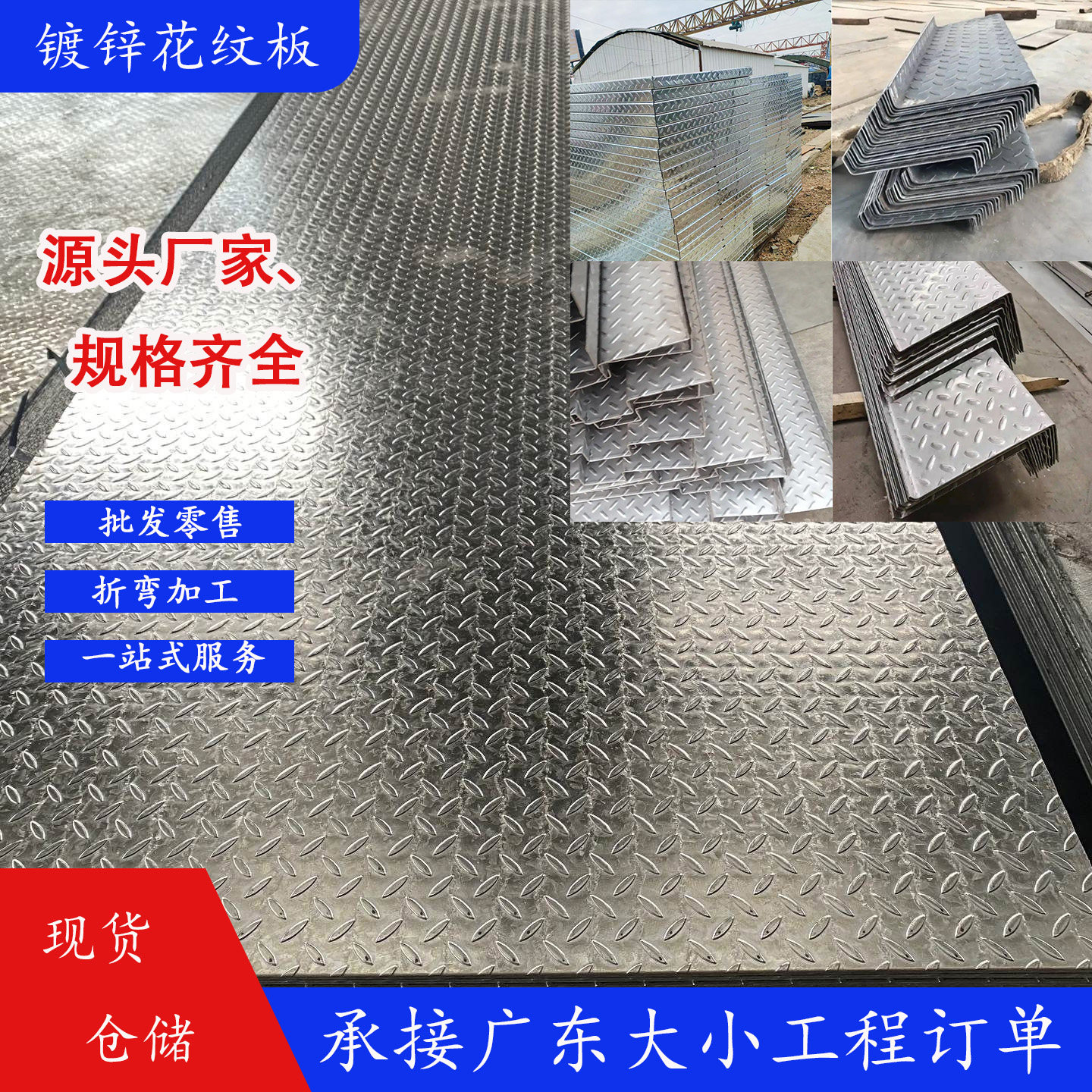 广东现货镀锌花纹板防滑钢板H-Q235B 花纹钢板压花踏板加工切割