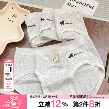 「猫生百态」纯色内裤女纯棉加长档经期少女三角裤ins小清新全棉