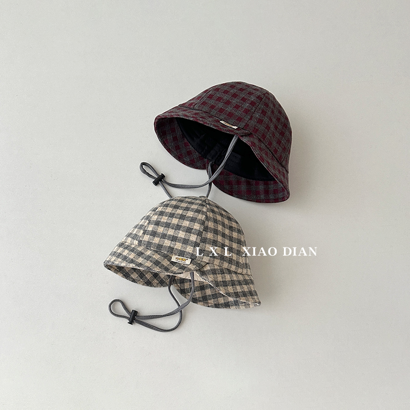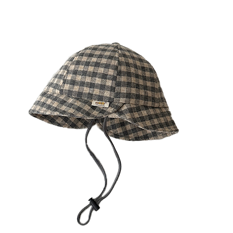 婴儿渔夫帽春秋季双帽檐小格子遮阳帽子男童冬天户外保暖宝宝帽子