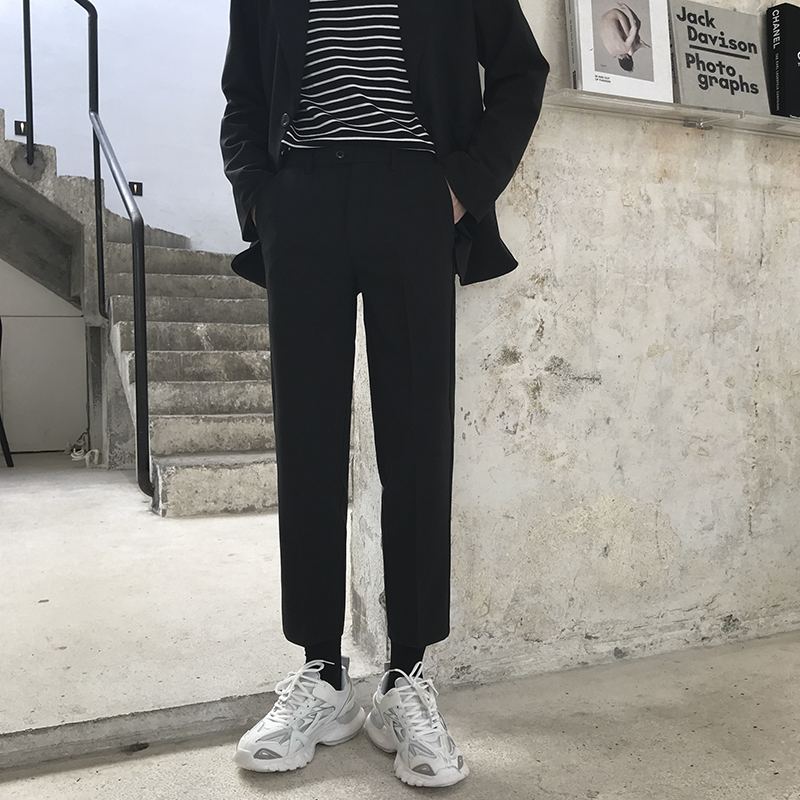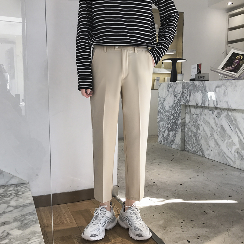 痞帅裤子男夏季薄款韩版潮流直筒裤坠感休闲小西裤百搭男士九分裤