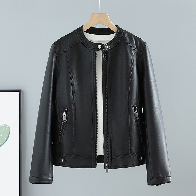 春秋季新款皮衣女韩版修身圆领上衣时尚机车黑色PU皮夹克短外套潮