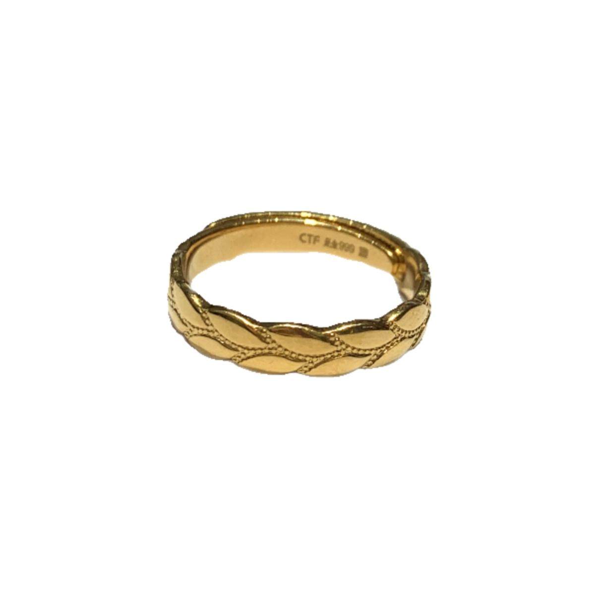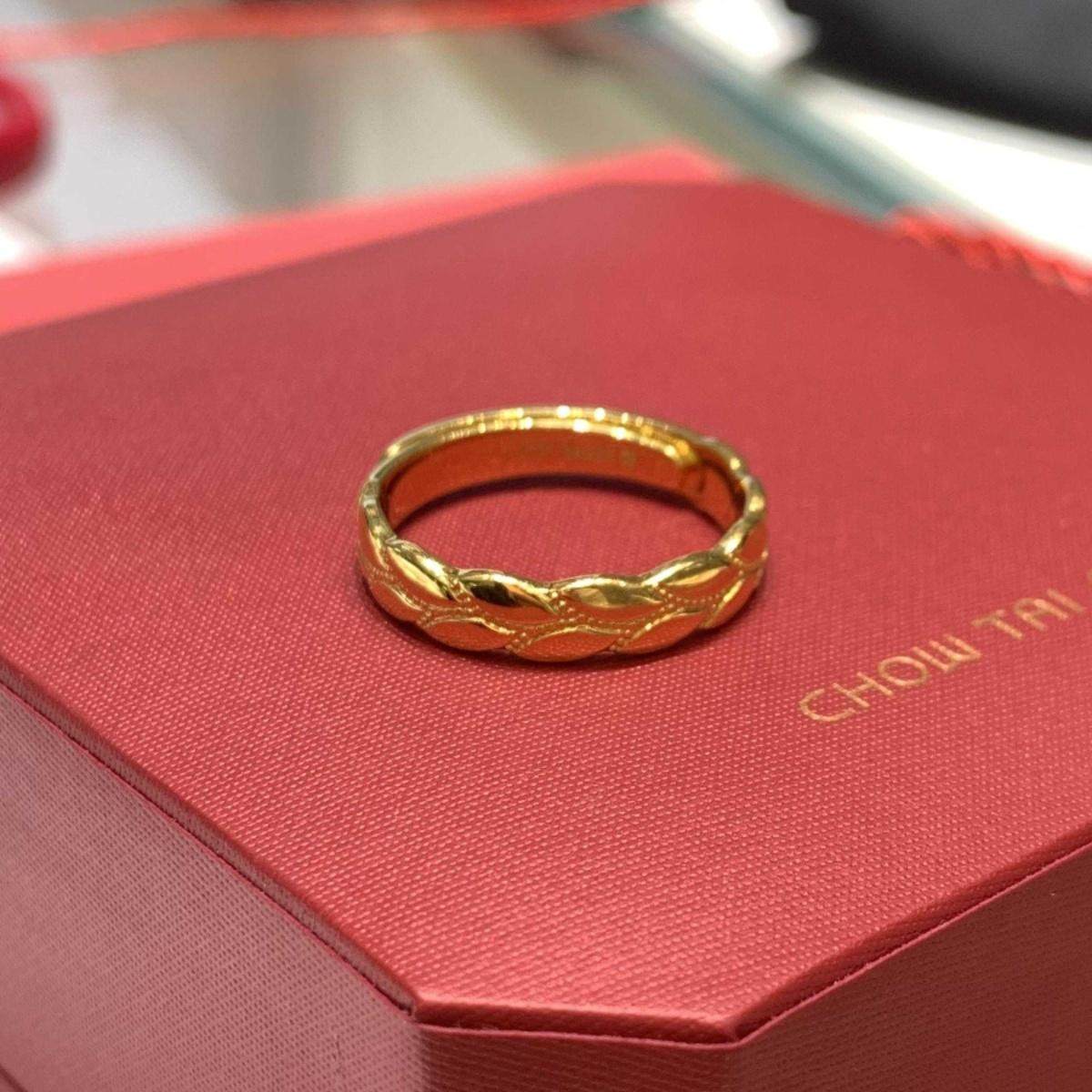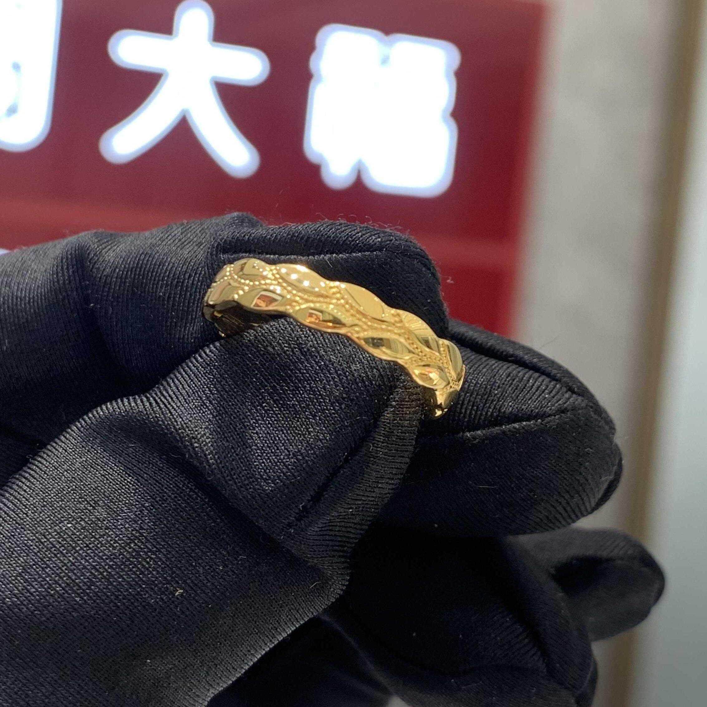 周大福代购 新款几何波纹麦穗可调节黄金戒指 克减80 计价F228114