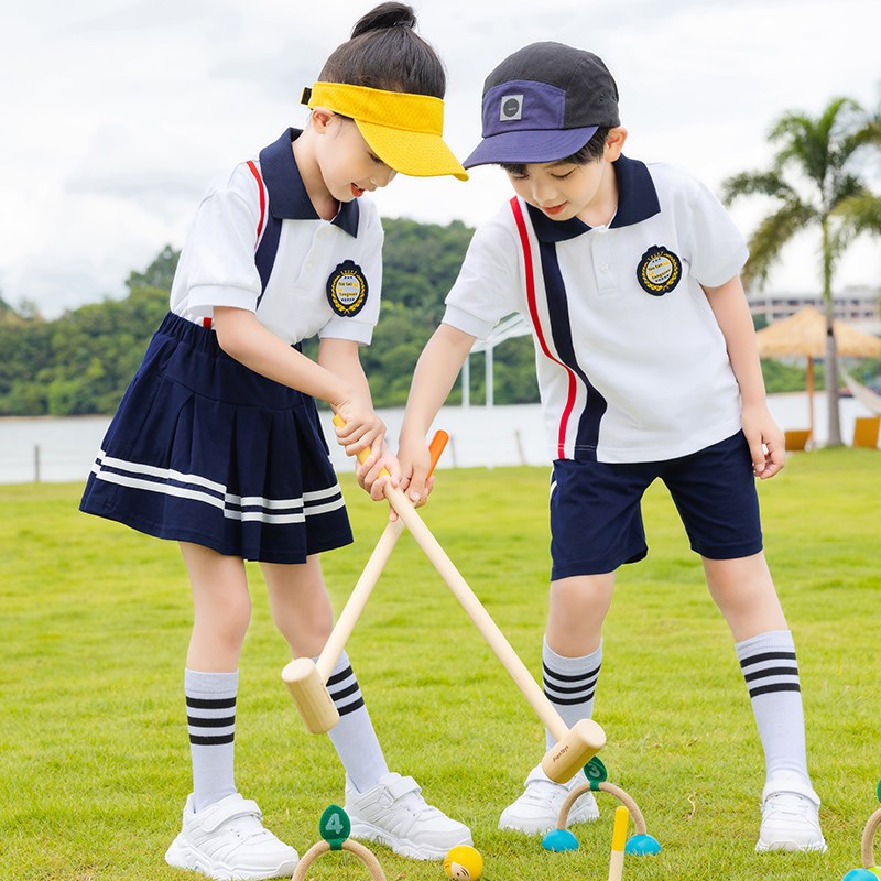 夏装小学生园服校服短袖白色薄款运动套装男童女童班服毕业服活动