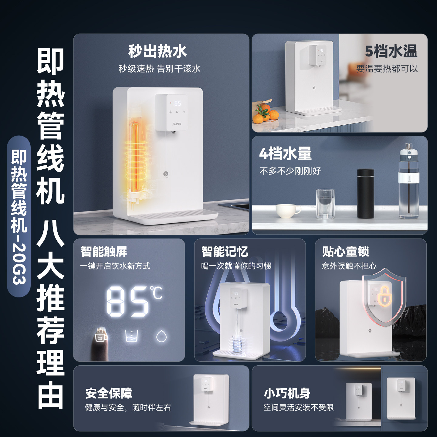 苏泊尔管线机饮水机壁挂式家用净饮机直饮机接桶装水即热2025新款