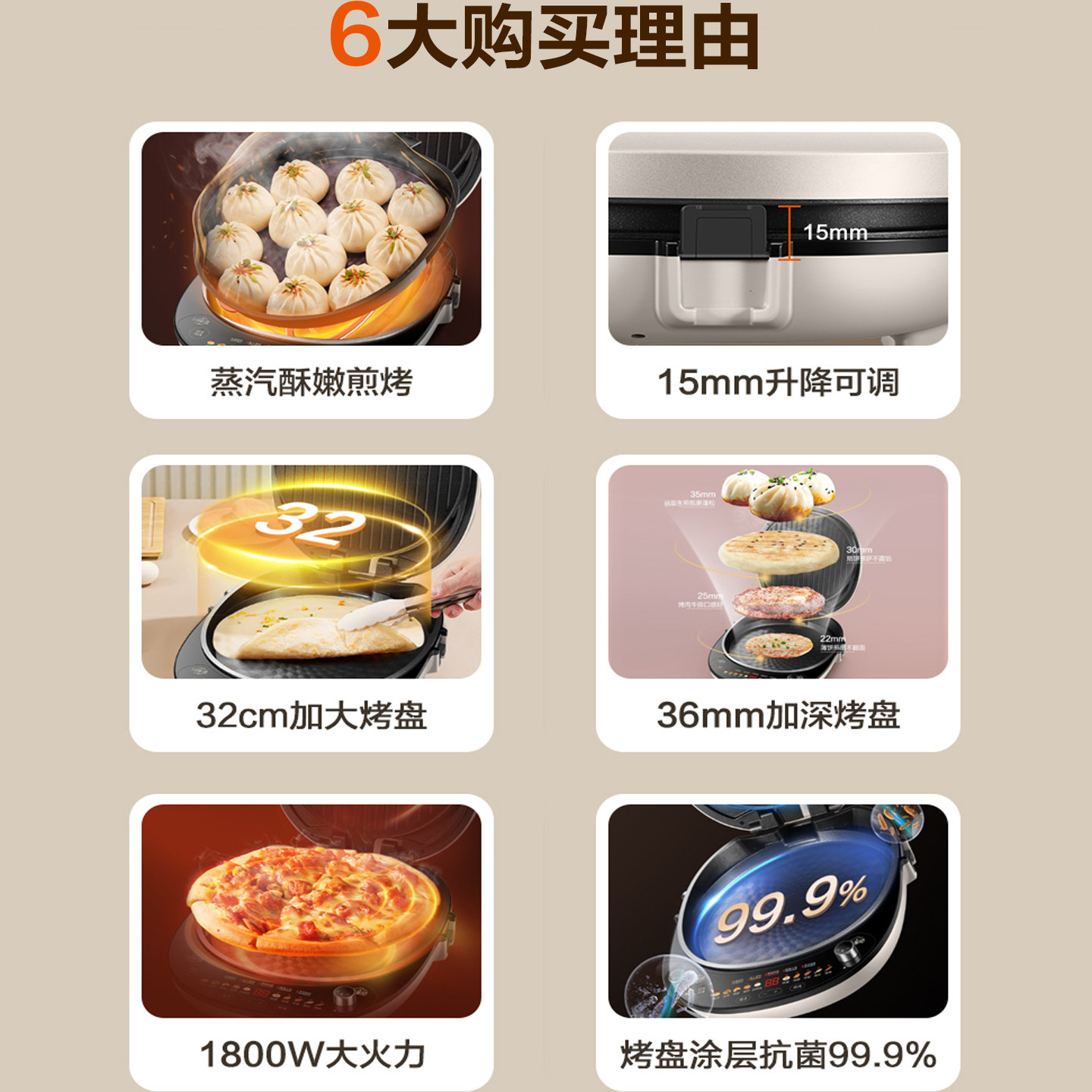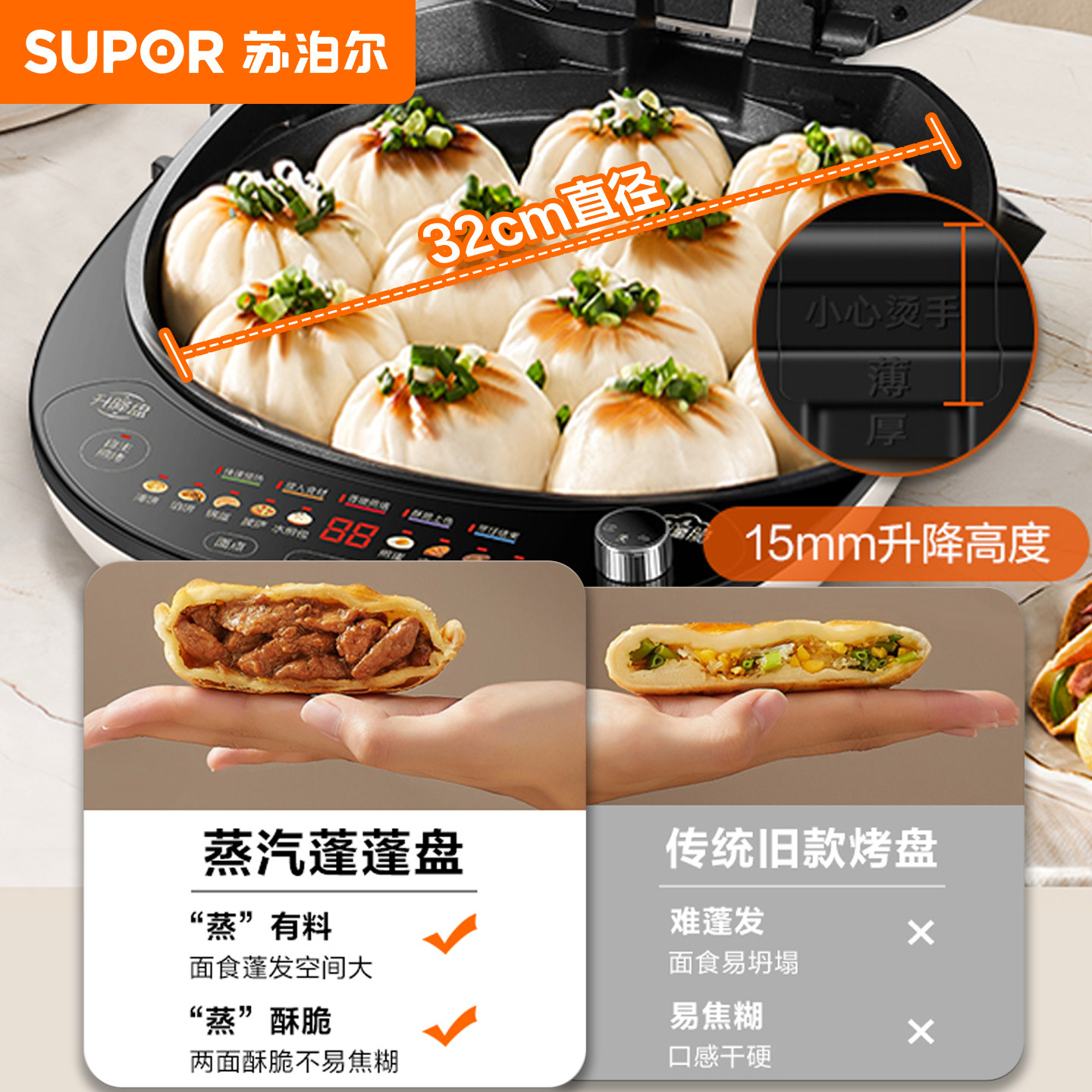 苏泊尔可升降双面加热电饼铛