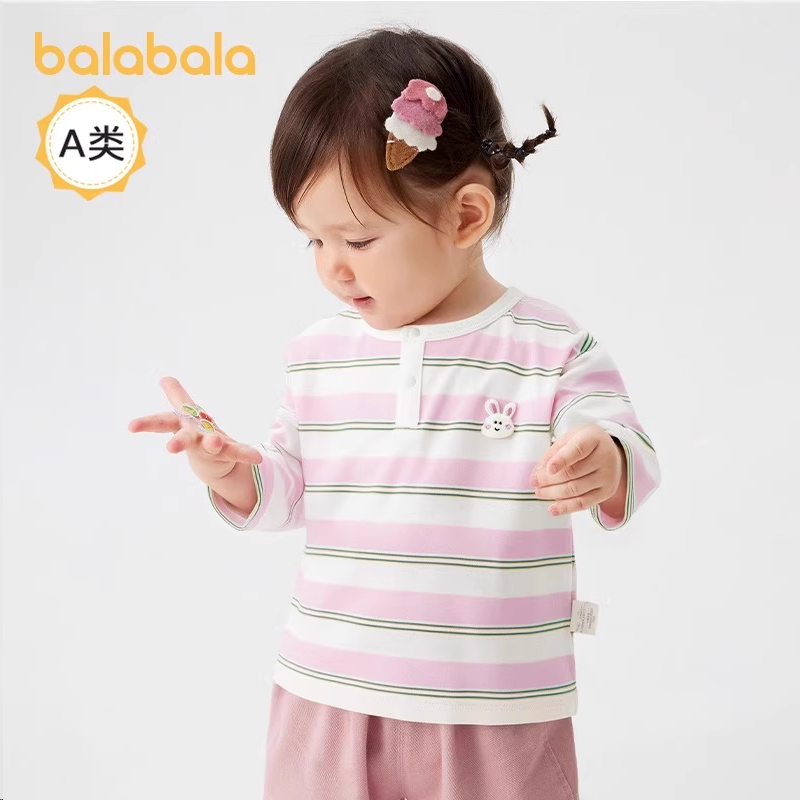 巴拉巴拉童装儿童长袖t恤纯棉打底衫男童女童条纹上衣2025秋新款
