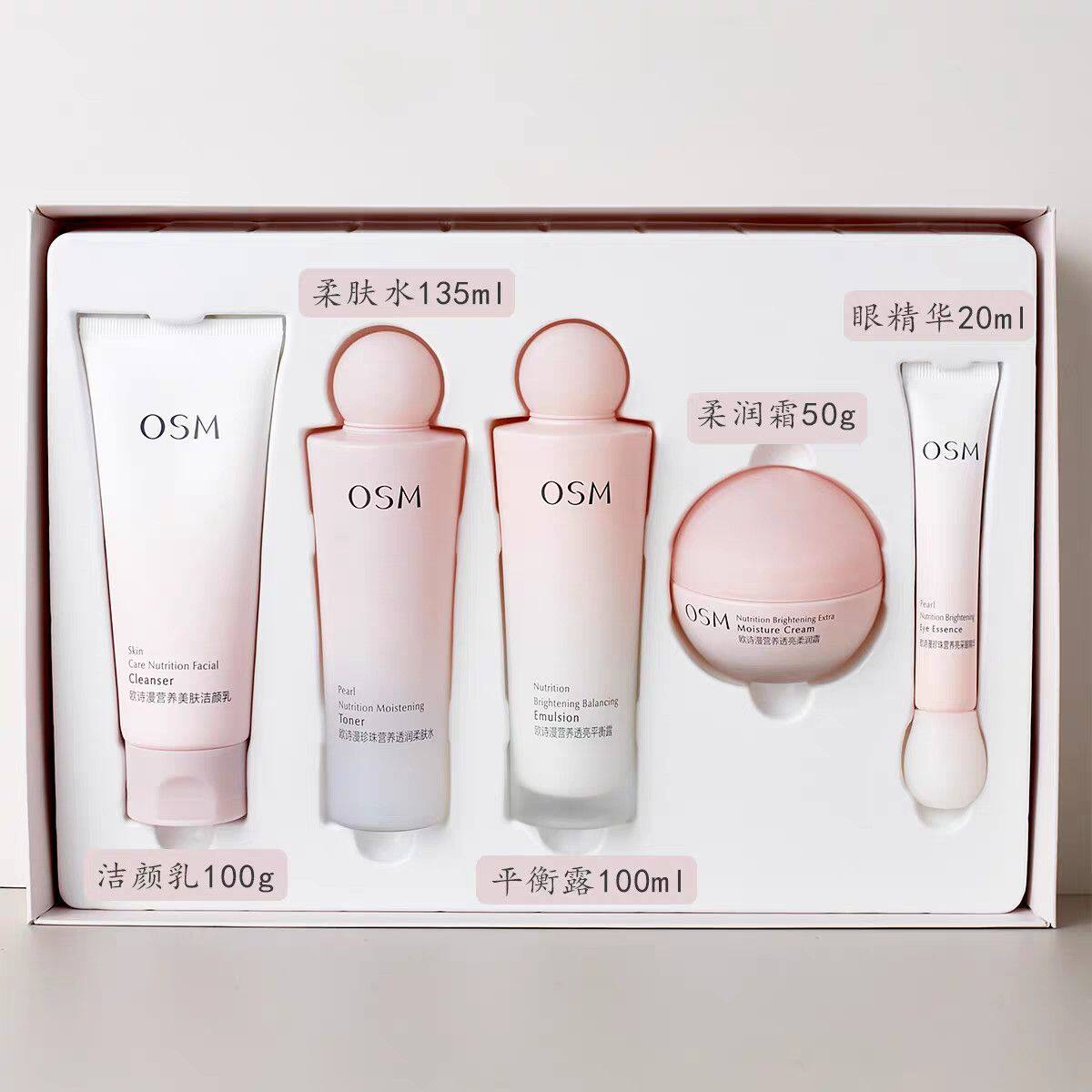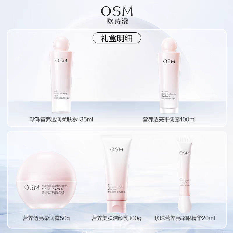 欧诗漫营养美肤五件套逐光礼盒水乳霜补水保湿提亮肤色化妆品套盒