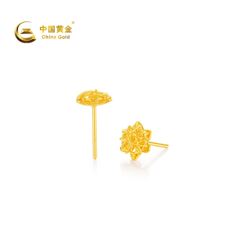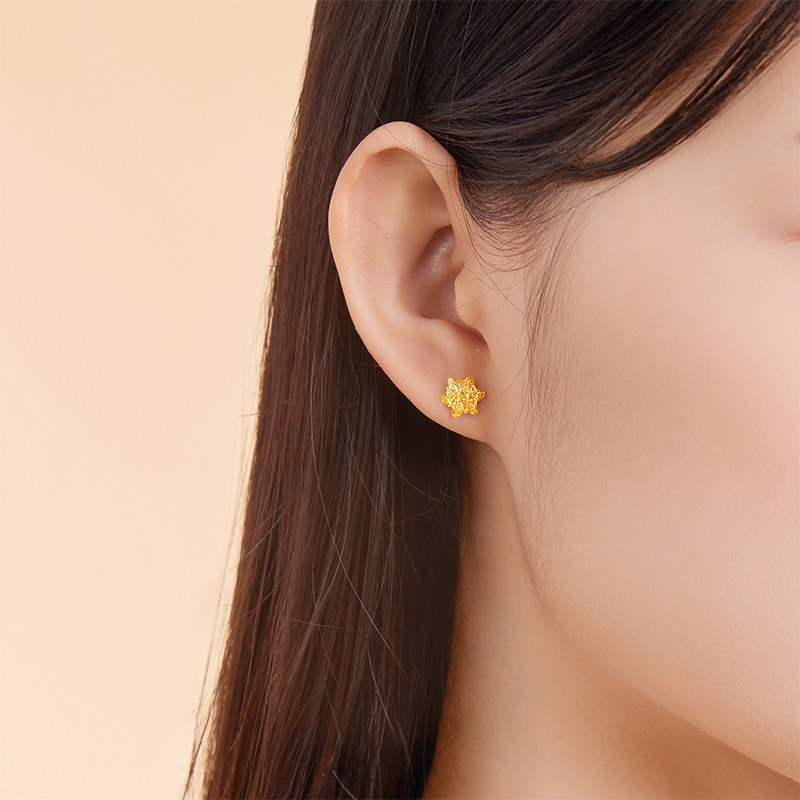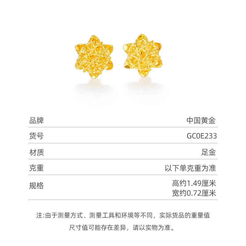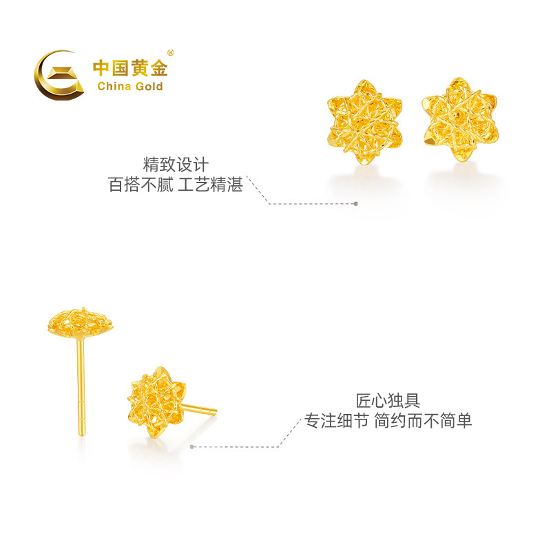【中国黄金官方店】黄金耳饰六芒星足金5G耳饰百搭新品送女友