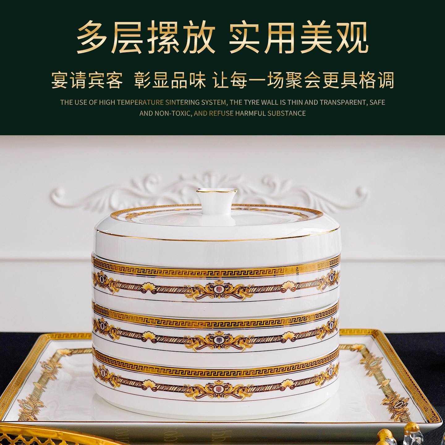 欧式骨瓷分层点心摆盘餐厅坚果盘