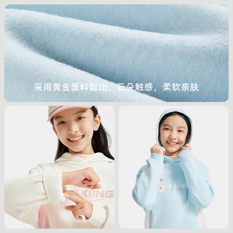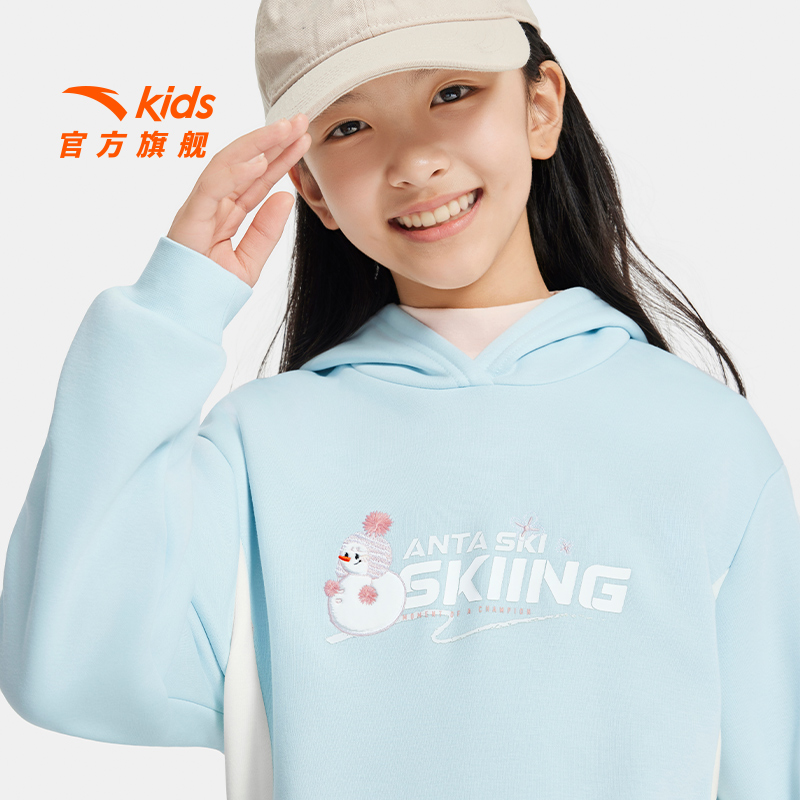 安踏儿童冬季女大童连帽套头衫