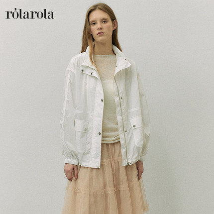 ROLAROLA25年秋款防风夹克韩式简约宽松百搭风衣户外高领外套女
