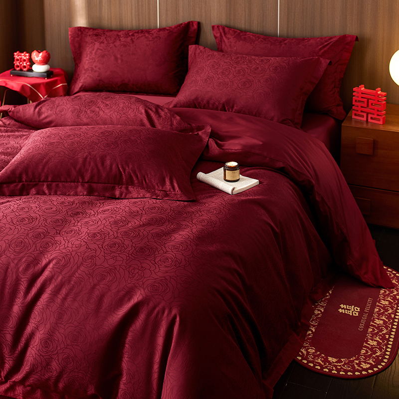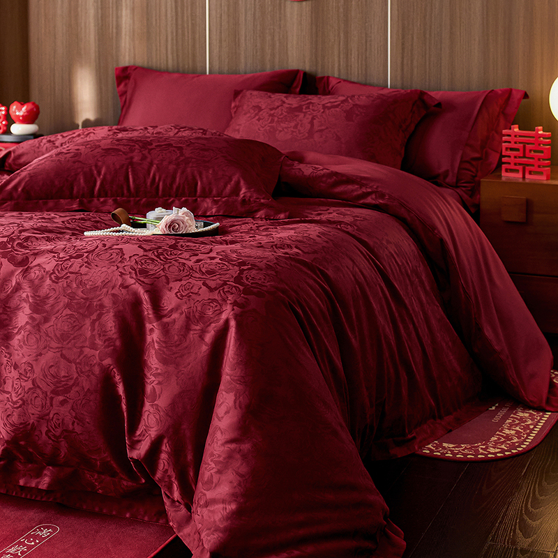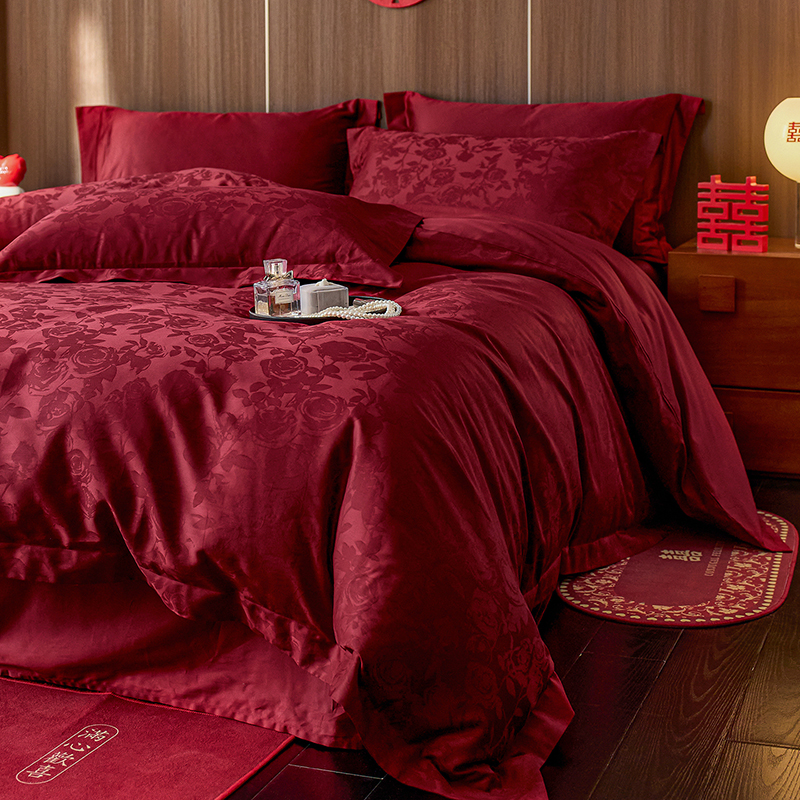 国梦高端100S长绒棉全棉红色喜被结婚四件套床上用品床单被套4