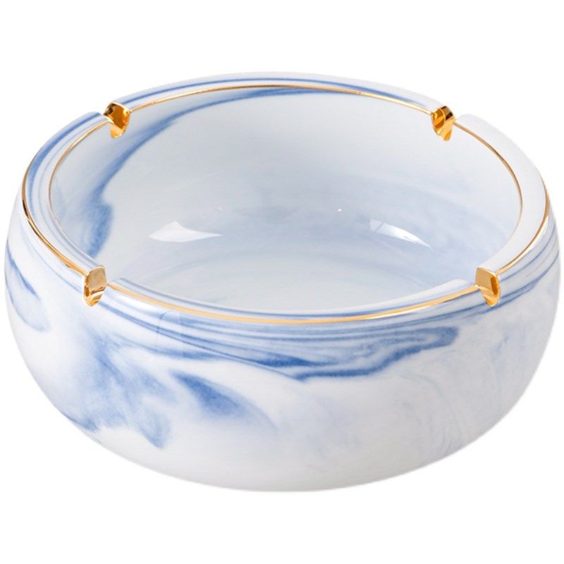 客厅圆形蓝色描金时尚实用陶瓷烟灰缸创意个性特大号欧式复古烟缸
