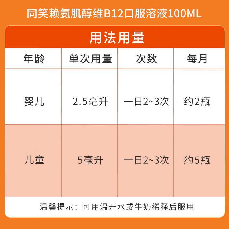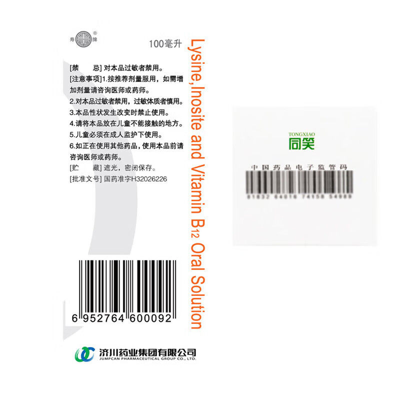 【同笑】赖氨肌醇维B12口服溶液100ml*1瓶/盒