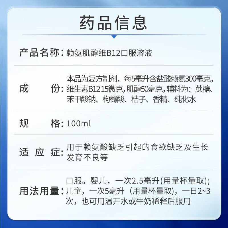 同笑 赖氨肌醇维b12口服液儿童100mlb12维生素赖氨酸生长发育不良