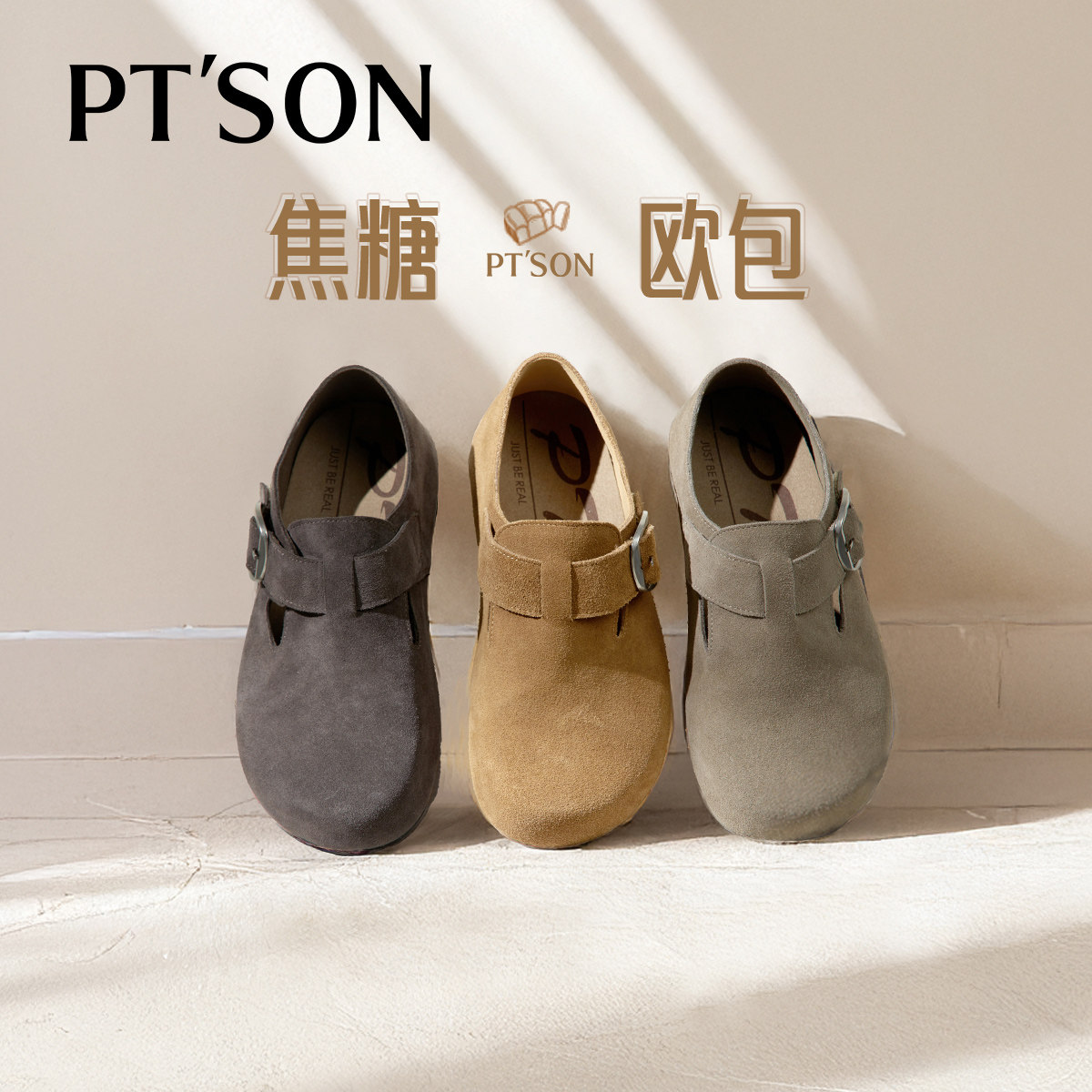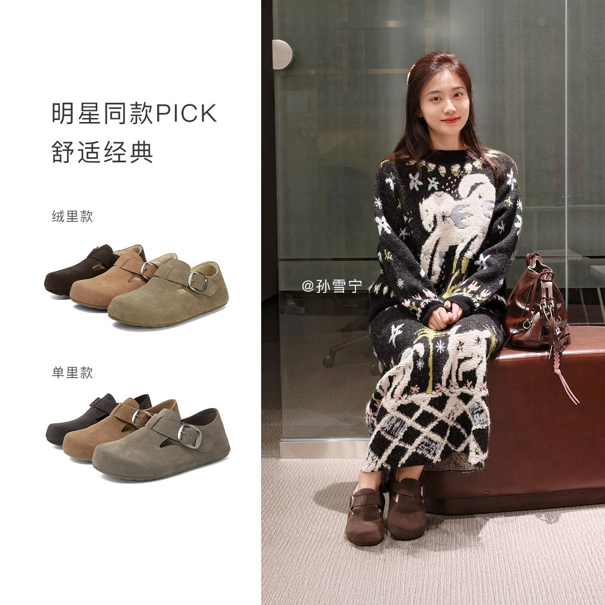 博主同款百田森厚底勃肯鞋女25新款真皮软底一脚蹬加绒勃肯鞋全包