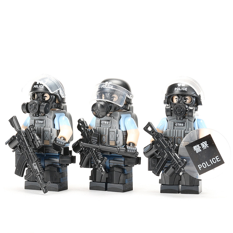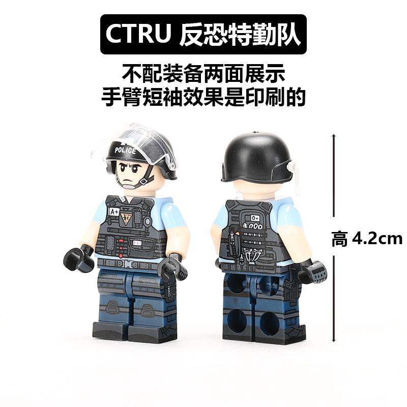 香港警察玩具防暴警察人仔CTRU反恐特勤队小颗粒拼装军事积木兵人