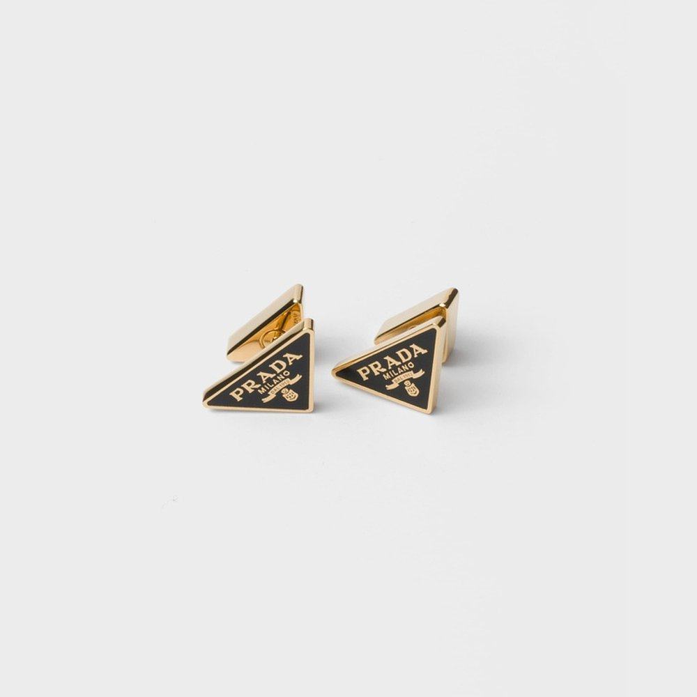 自营欧洲直邮Prada普拉达 女士金色/黑色金属金属三角标识耳环