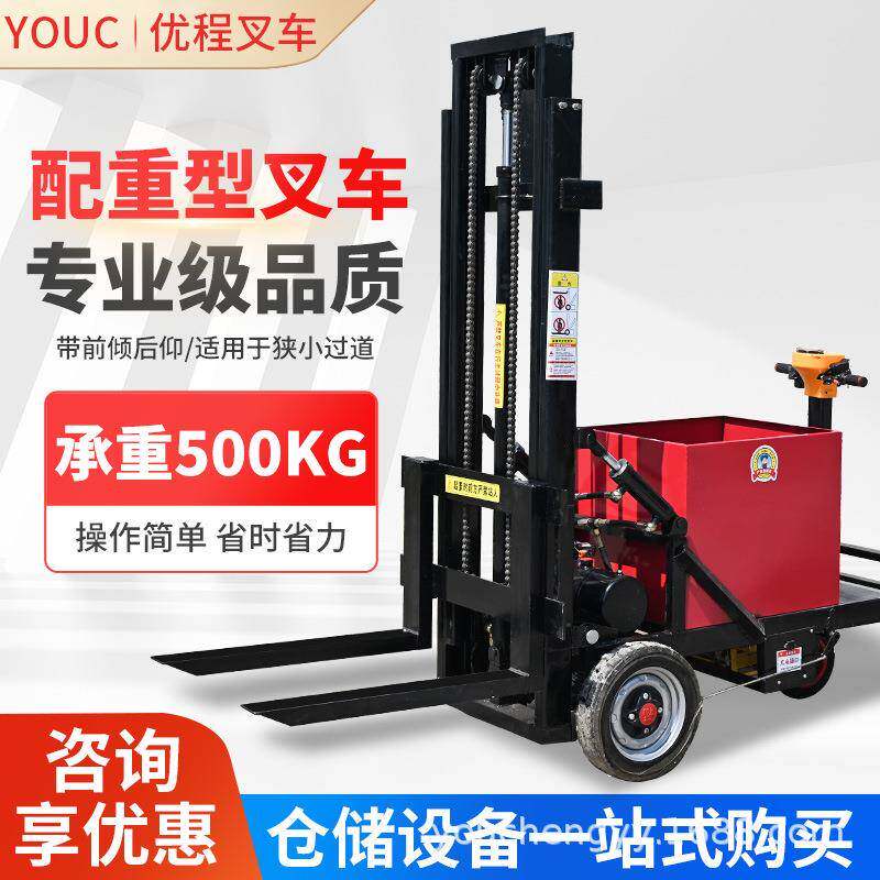 站驾式电动叉车简易无腿堆高车0.5吨液压升高车装卸叉车
