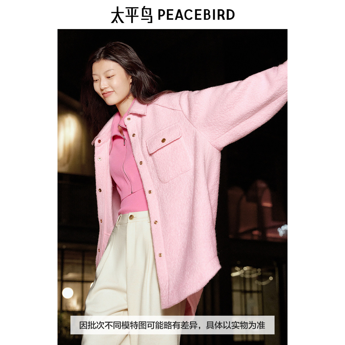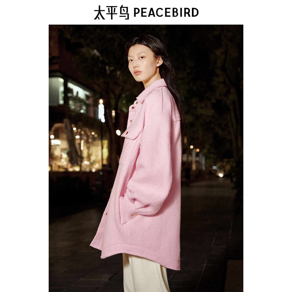 太平鸟女装年冬季新款衬衫式呢大衣A3AAE420K