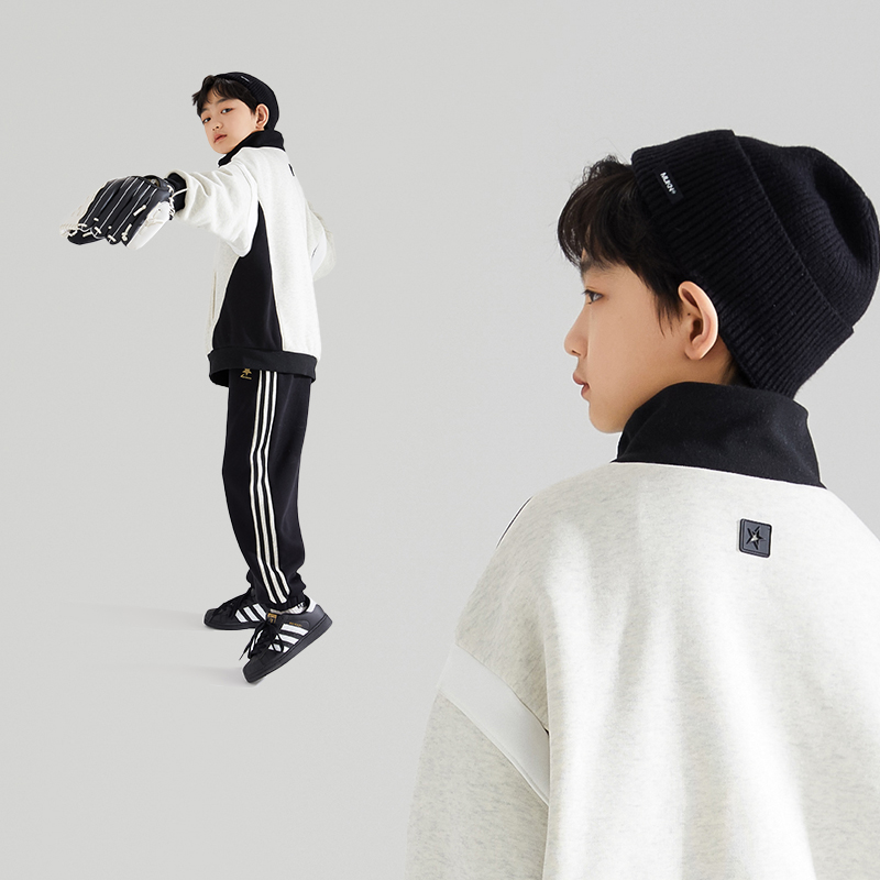 男童美式复古运动休闲外套秋冬儿童加厚卫衣学生宽松运动裤子潮