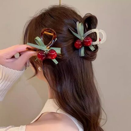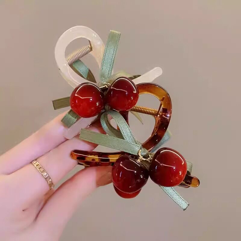 甜美可爱樱桃抓夹车厘子发夹女后脑勺盘发鲨鱼夹子头饰半扎发发卡