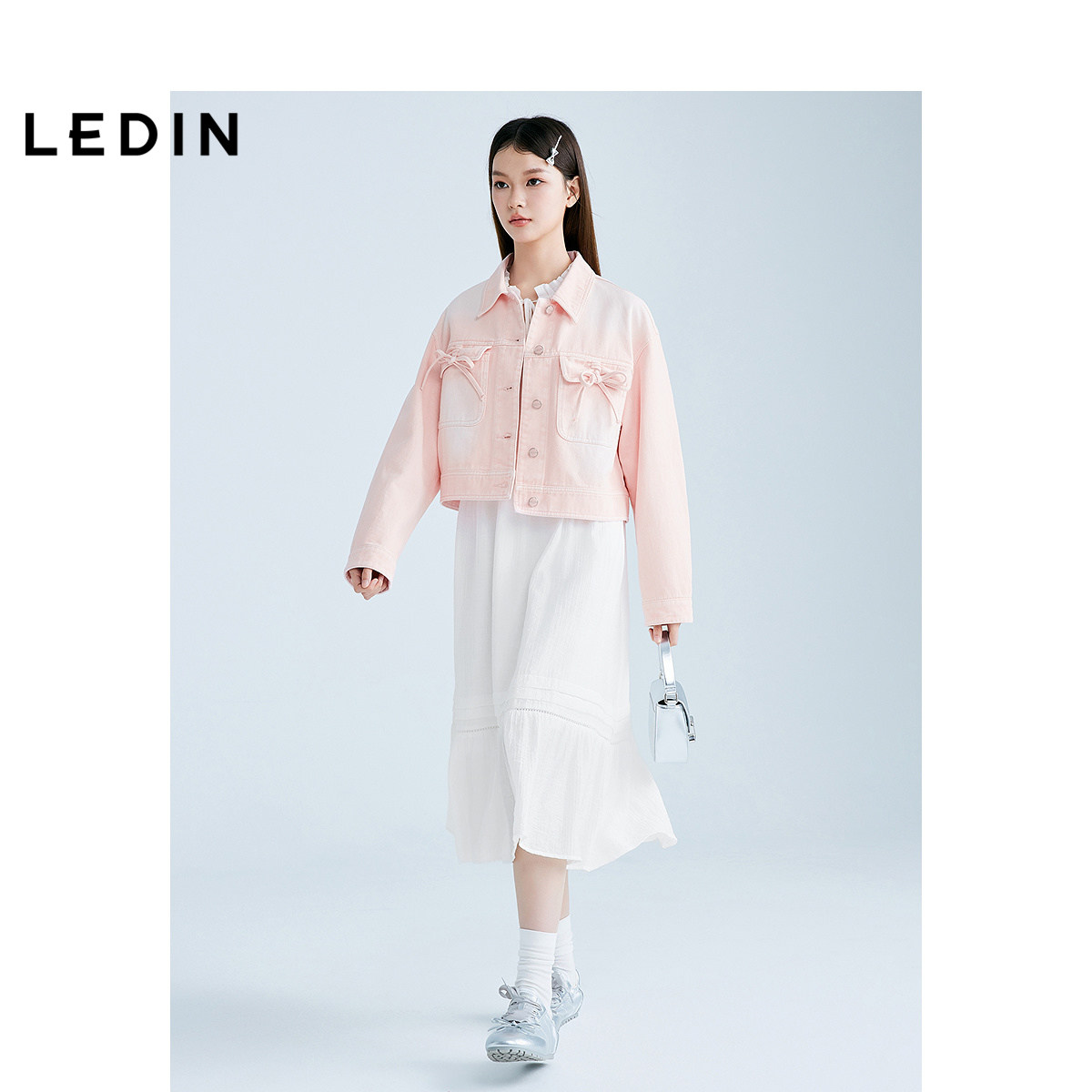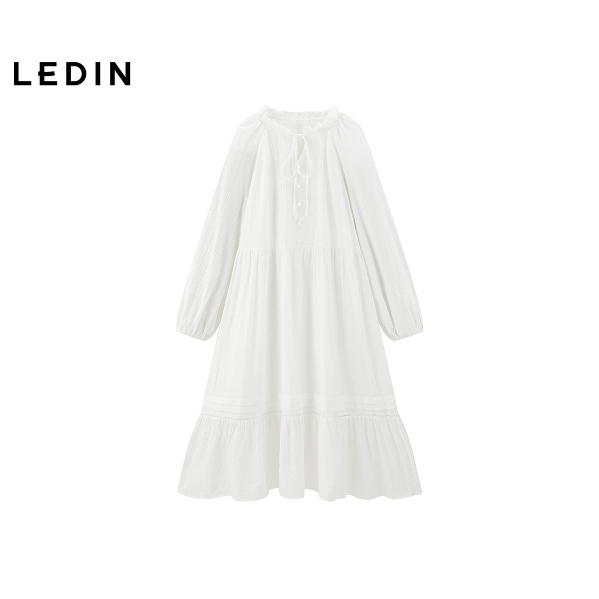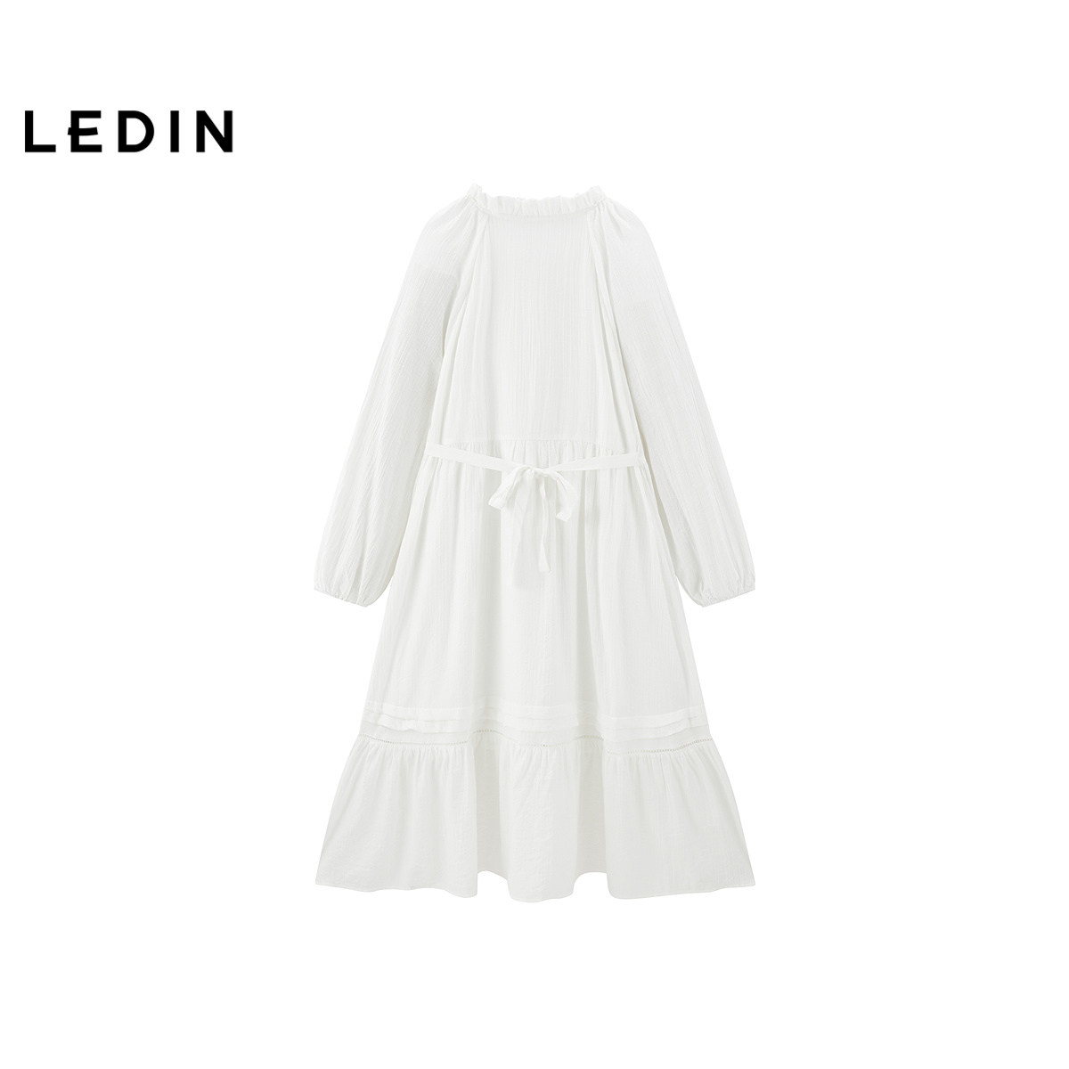 【商场同款】乐町甜美韩系系带连衣裙春新款奶油白长裙C1FAF1403