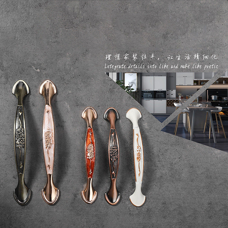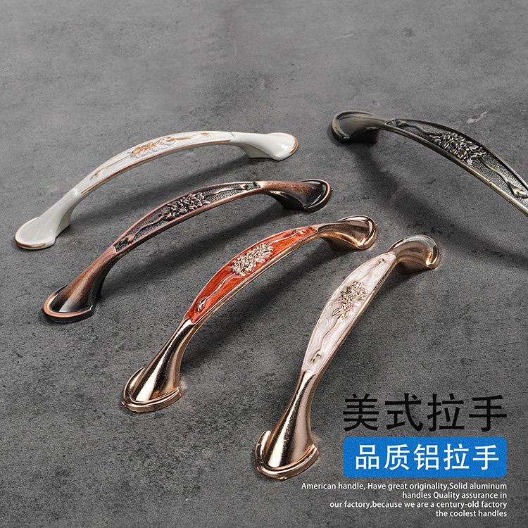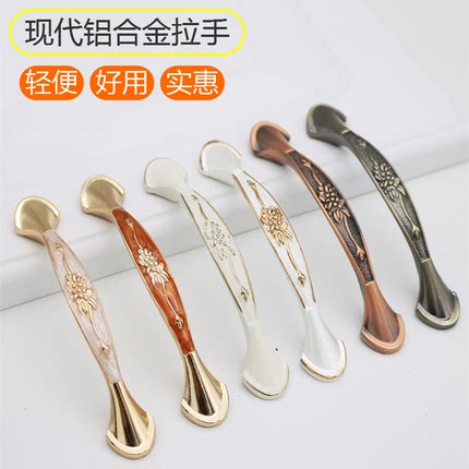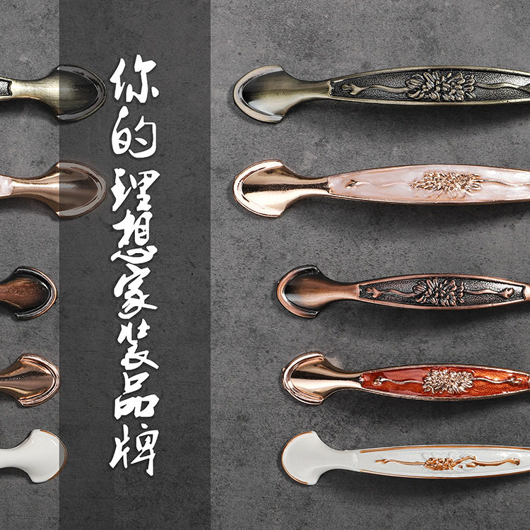 现代简约仿古铜色抽屉衣柜橱柜门象牙白琥珀铝合金中式古典小拉手