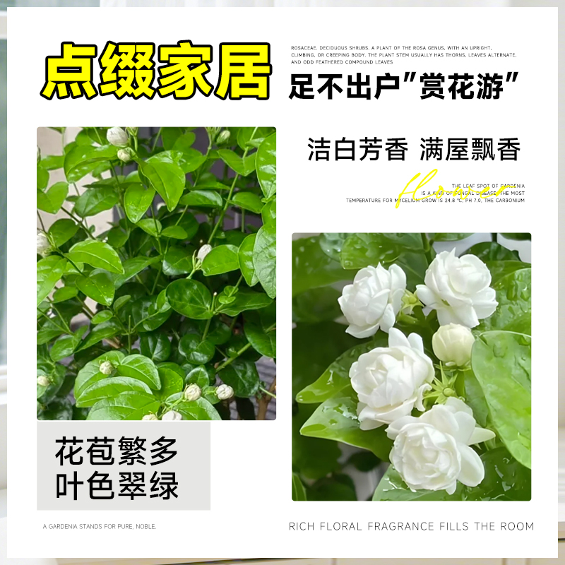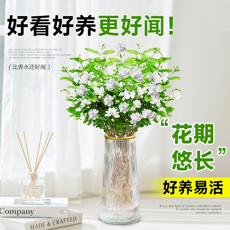 茉莉花水培植物盆栽带花苞办公室内桌面好养懒人鲜花绿植水养花卉