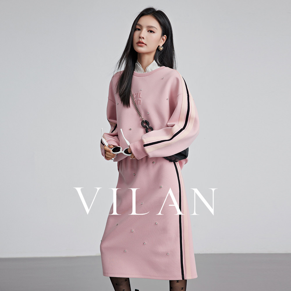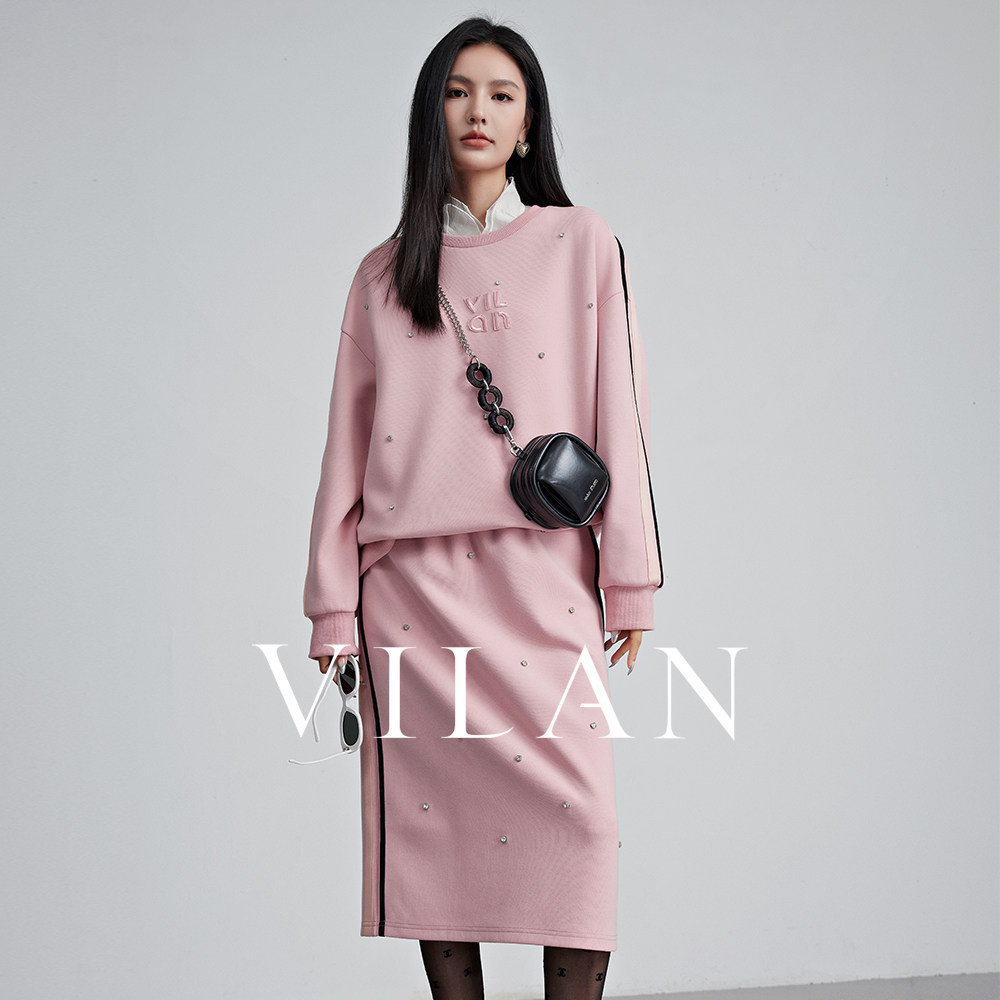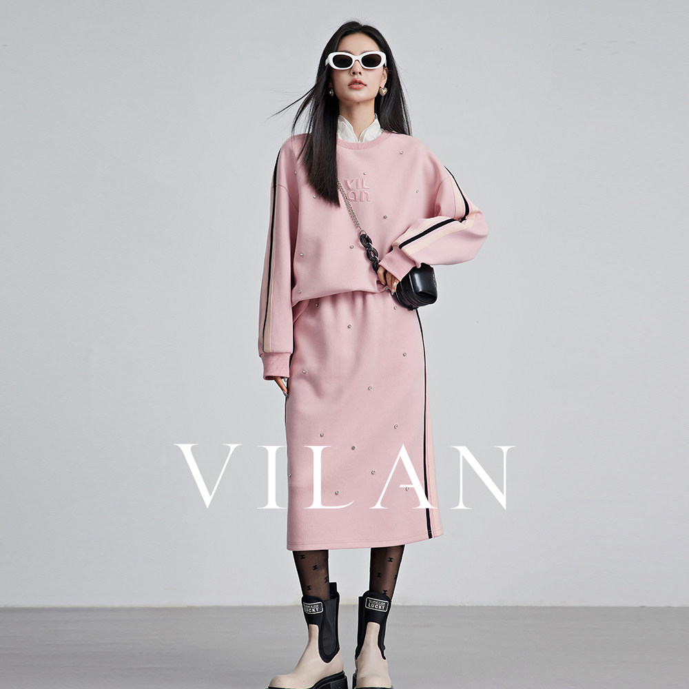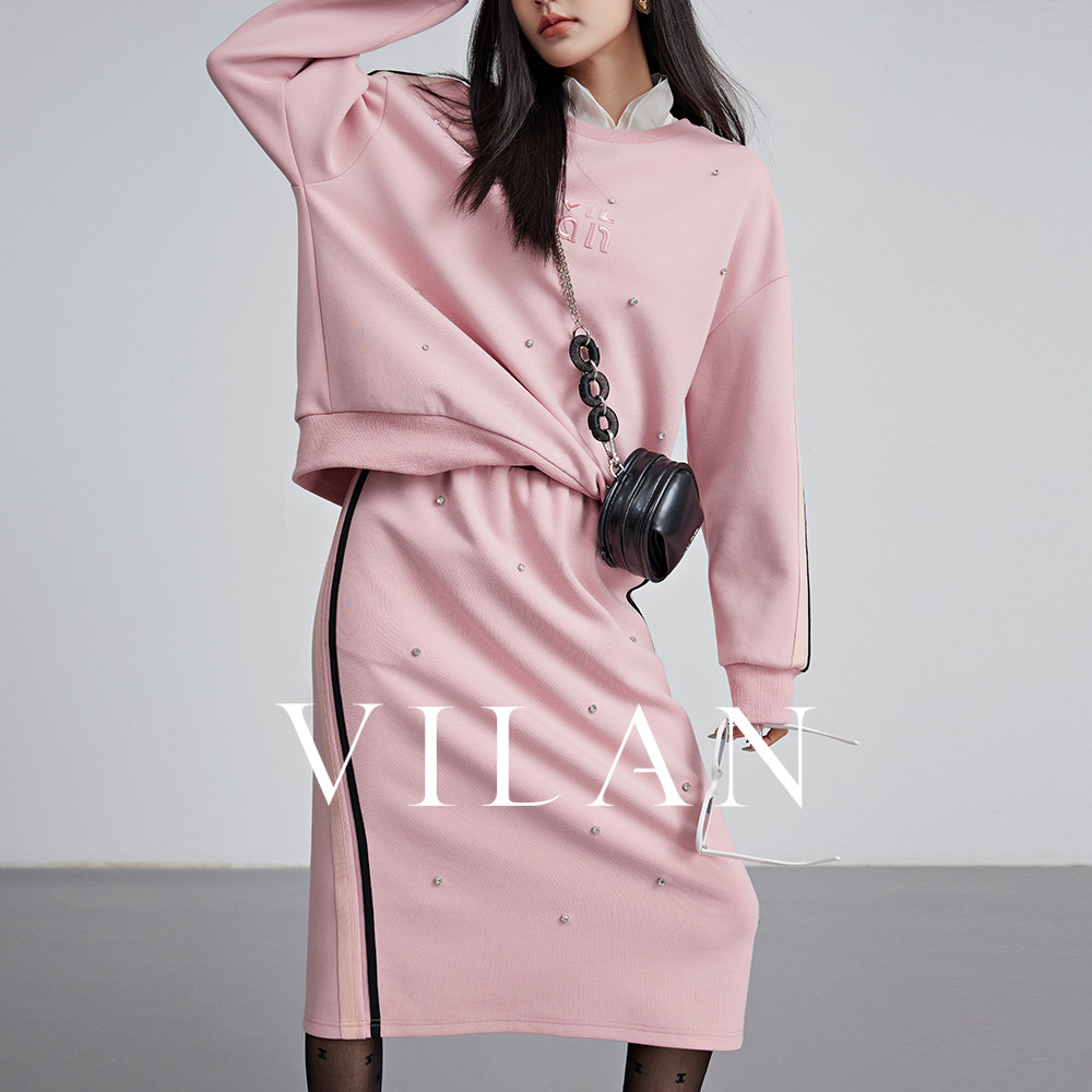 vilan/慧兰半身裙女2025秋冬新款时尚高腰显瘦直筒撞色减龄长裙子