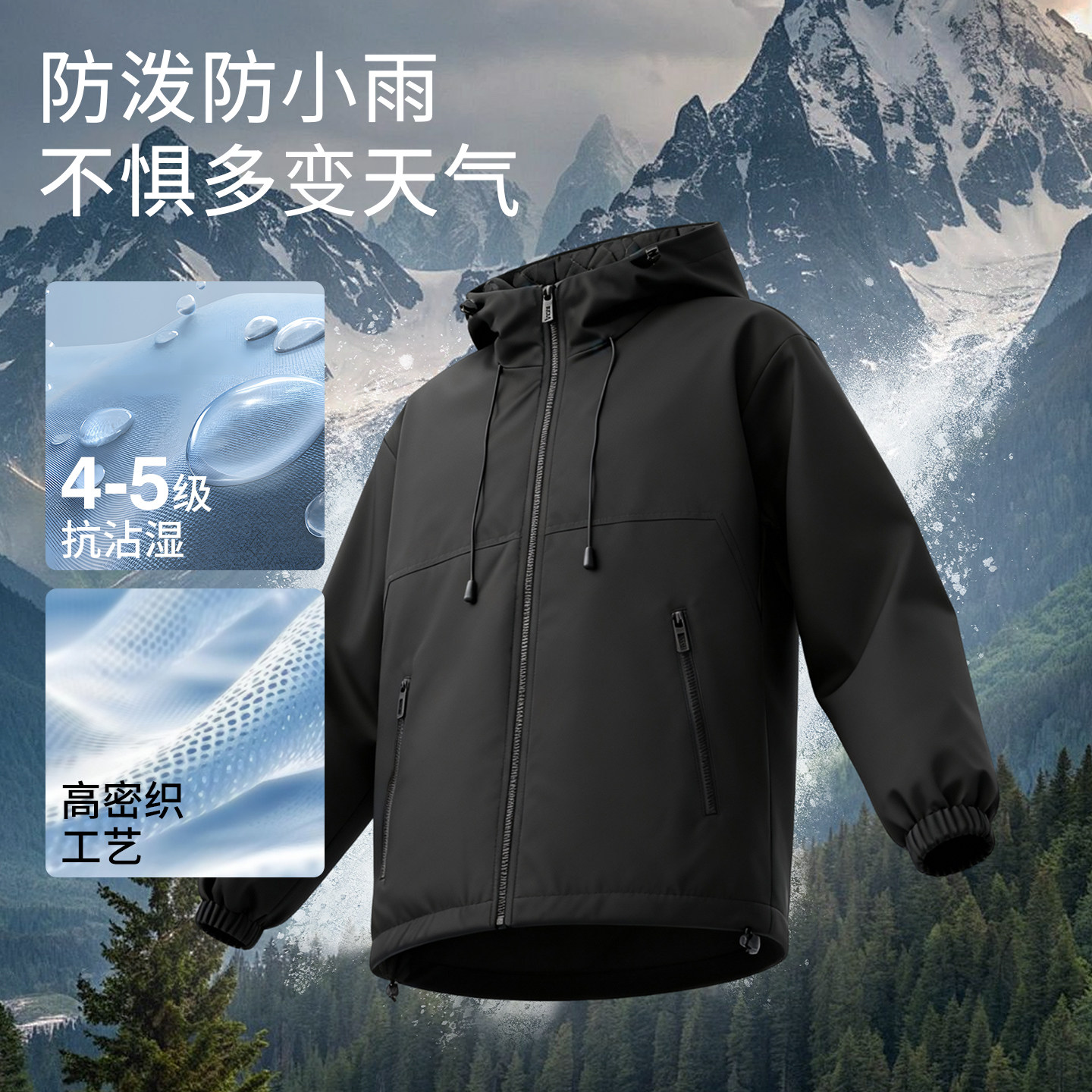 班尼路S&K软壳连帽外套男秋冬季军绿夹棉保暖防泼水男士冲锋夹克A