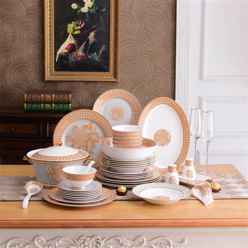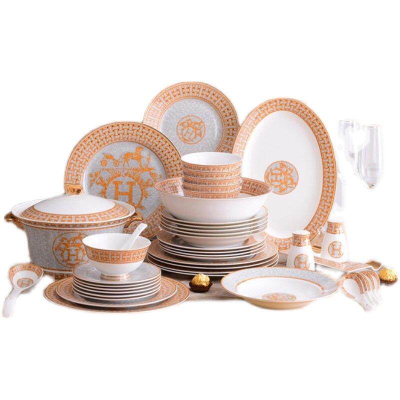 马拉车58头骨瓷餐具欧式碗碟套装家用陶瓷器套装碗筷碗盘碗结婚