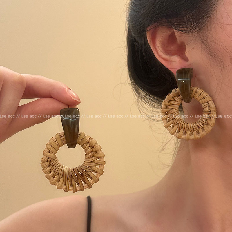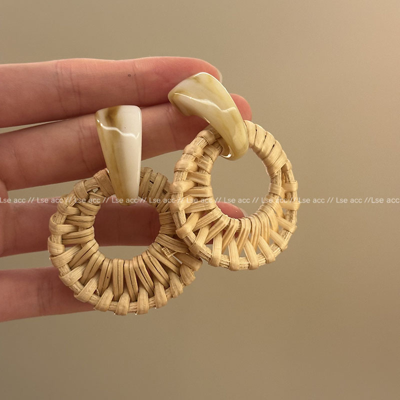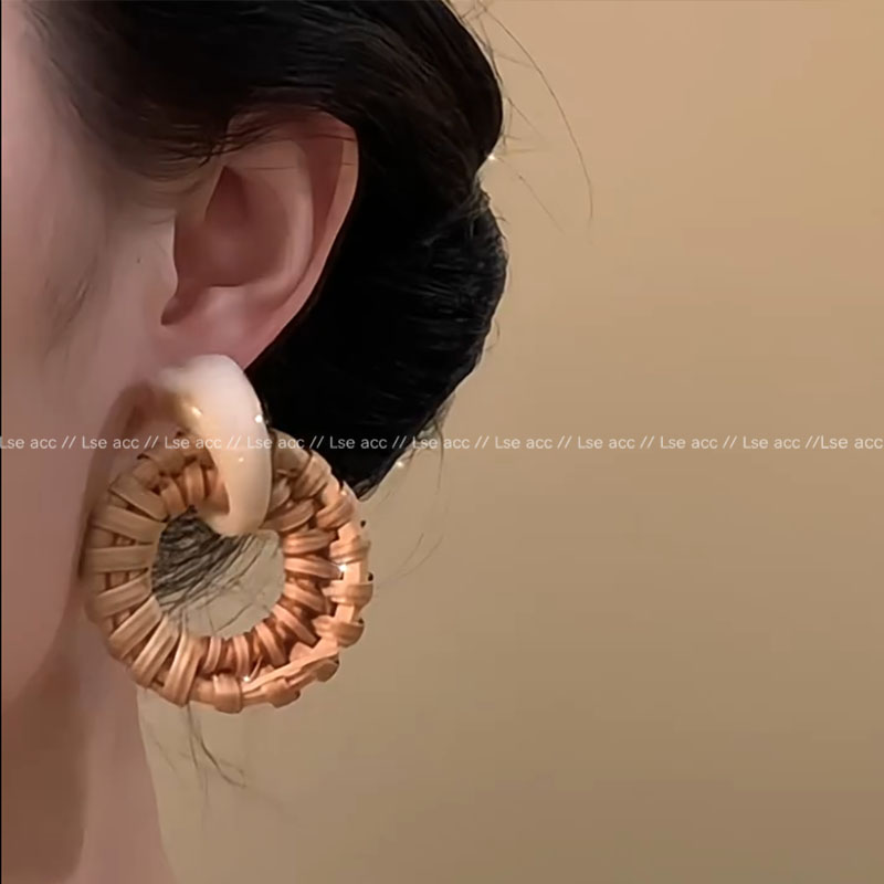 波西米亚风竹藤草编耳环女小众独特夸张耳钉度假风耳饰品耳圈耳坠