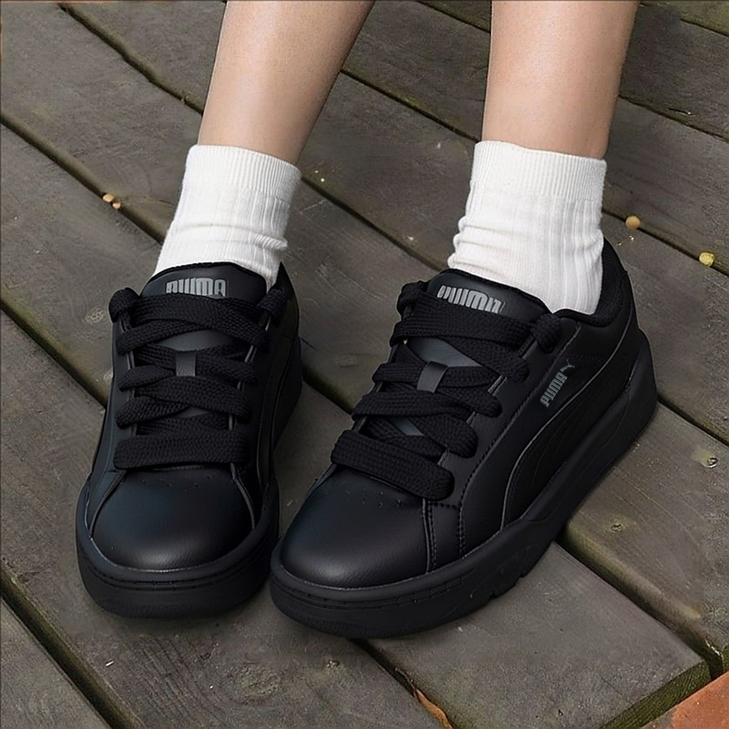 PUMA彪马黑色皮面滑板鞋男鞋女鞋2025新款低帮运动鞋400496-02