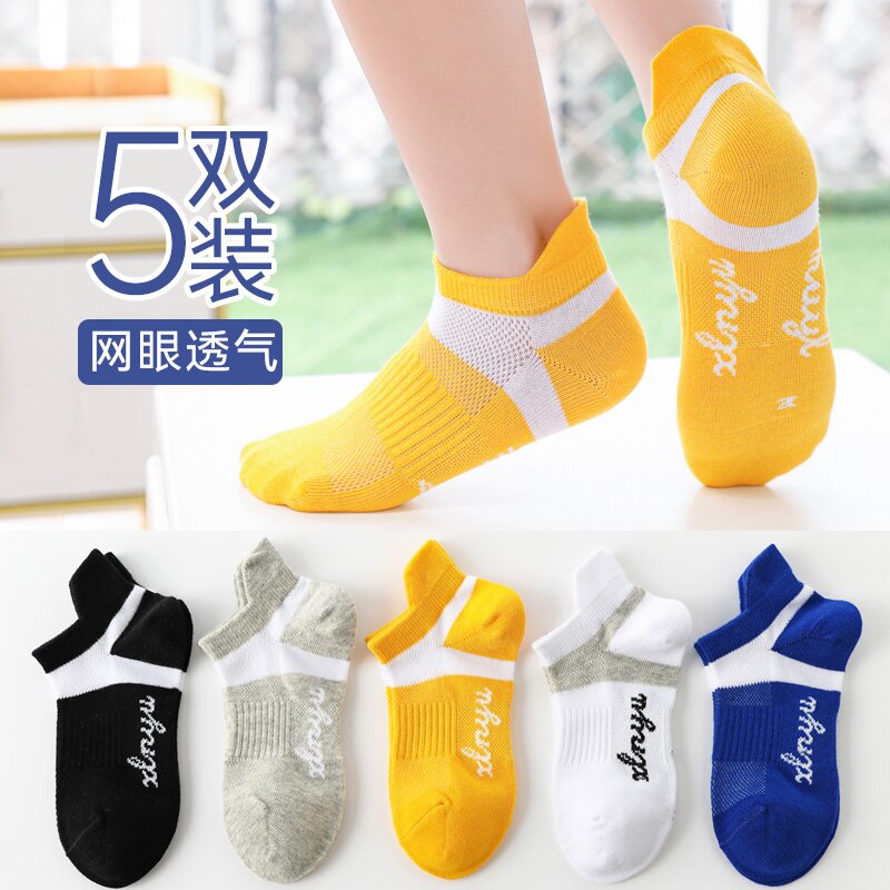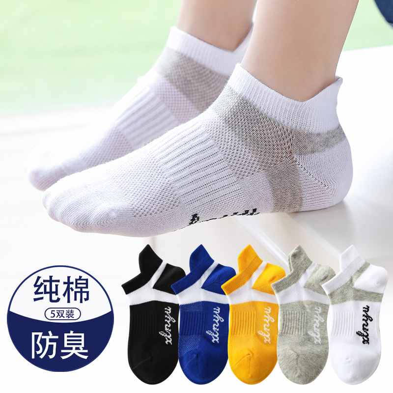 男童袜夏季薄款纯棉透气网眼船袜儿童夏天防臭男孩中大童运动短袜