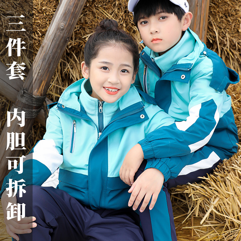 极速冲锋衣男童三合一可拆卸女童加E厚加绒儿童大童滑雪服户外春