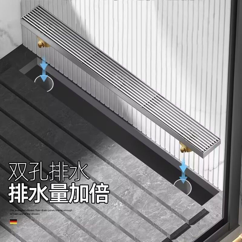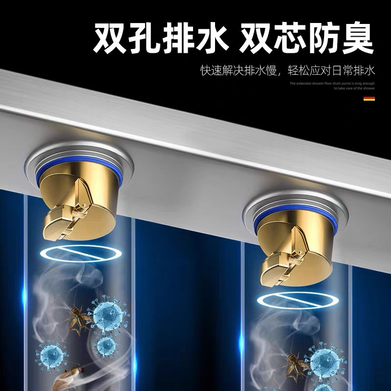 大排量双排水口304不锈钢防臭地漏铜芯卫生间淋浴房长条双孔地漏
