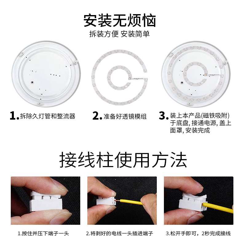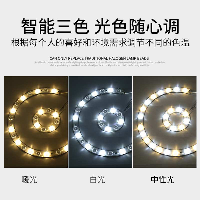 led改造光源灯板 环灯管吸顶灯家用超亮灯盘三色变光圆形灯片灯芯
