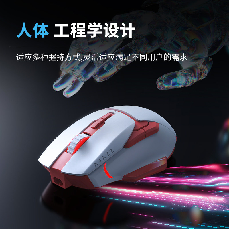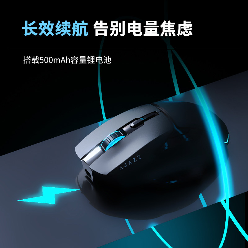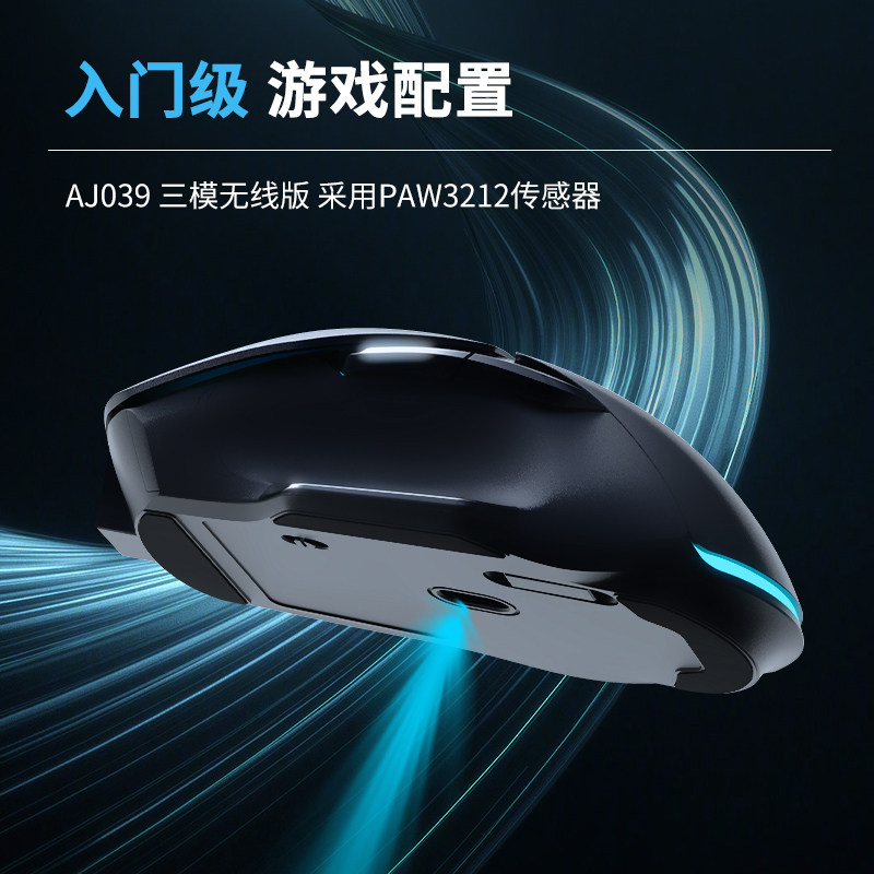黑爵AJ039无线电竞鼠标蓝牙三模充电500mAh静音办公游戏电脑