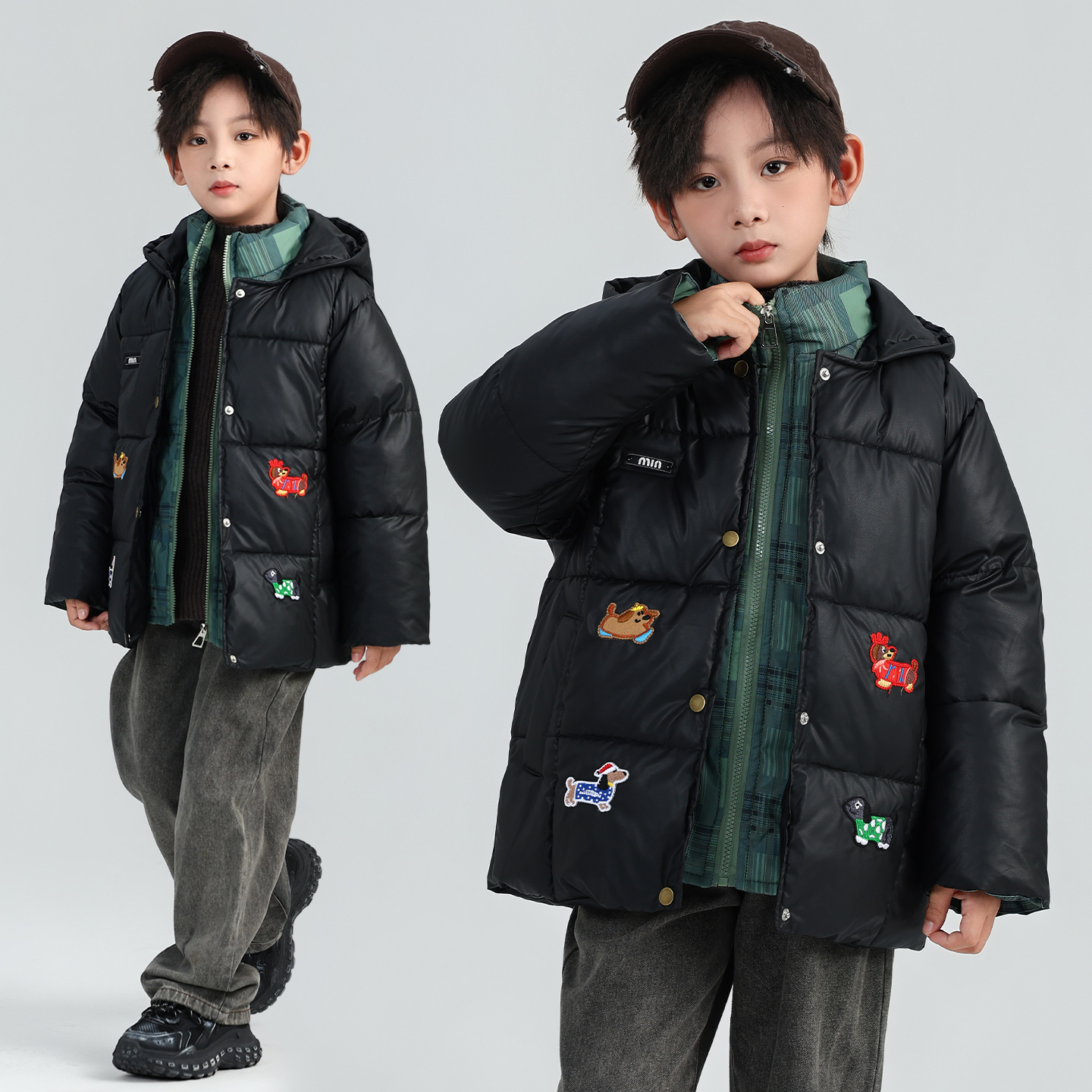 男童棉服2025新款中大儿童加厚羽绒棉衣男孩假两件冬装上衣外套潮