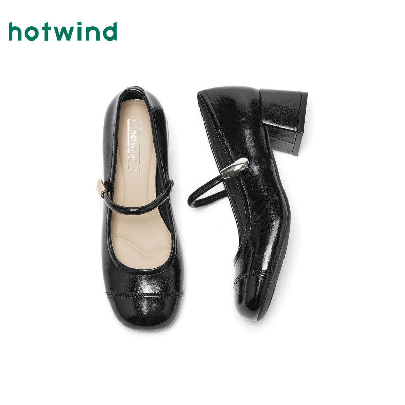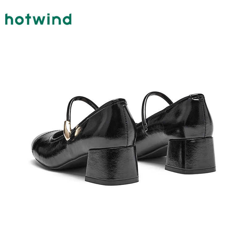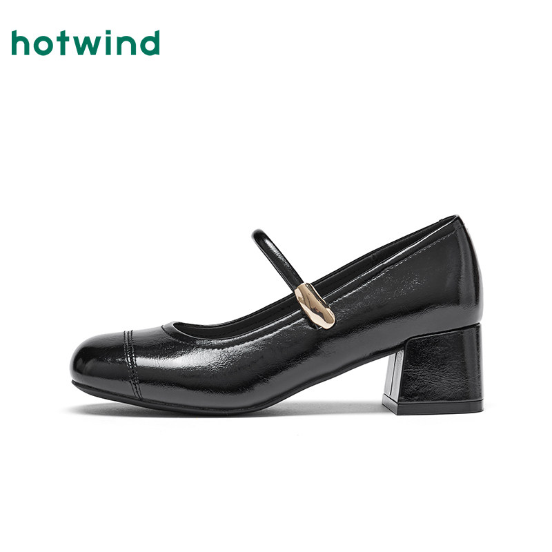 热风复古玛丽珍单鞋女2026年春季新款红色粗跟浅口女鞋百搭高跟鞋