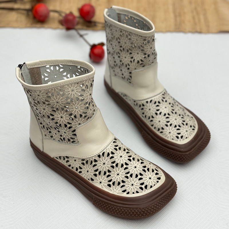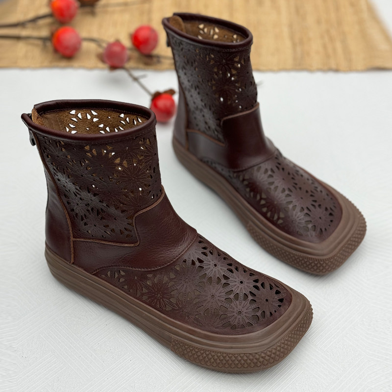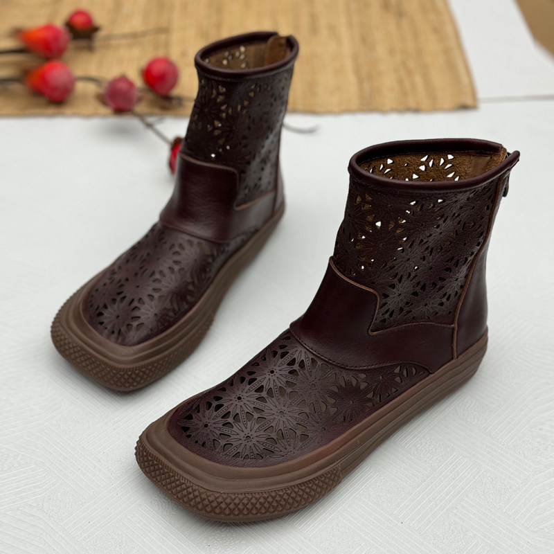手工真皮复古凉靴2025新款妈妈凉鞋女平底中老年牛皮夏季透气短靴