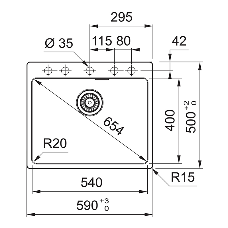 FRANKE弗兰卡进口花岗岩水槽台盆小单槽黑色厨房水盆MRG610-54